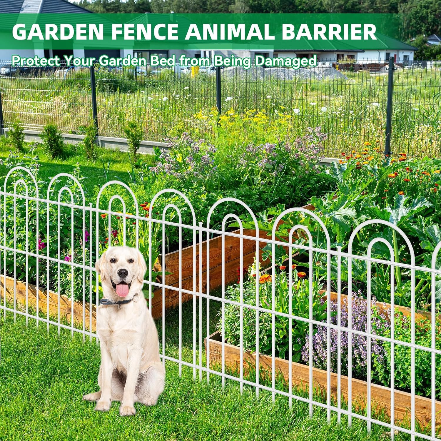 - GARDEN FENCE ANIMAL BARRIER - Set an edging border, provides superior protection for your yard, patio, or garden, and prevents your dogs and other animals from entering and damaging your plants. It can also be used as a temporary outdoor dog fence, providing your dogs with a safe outdoor activity space