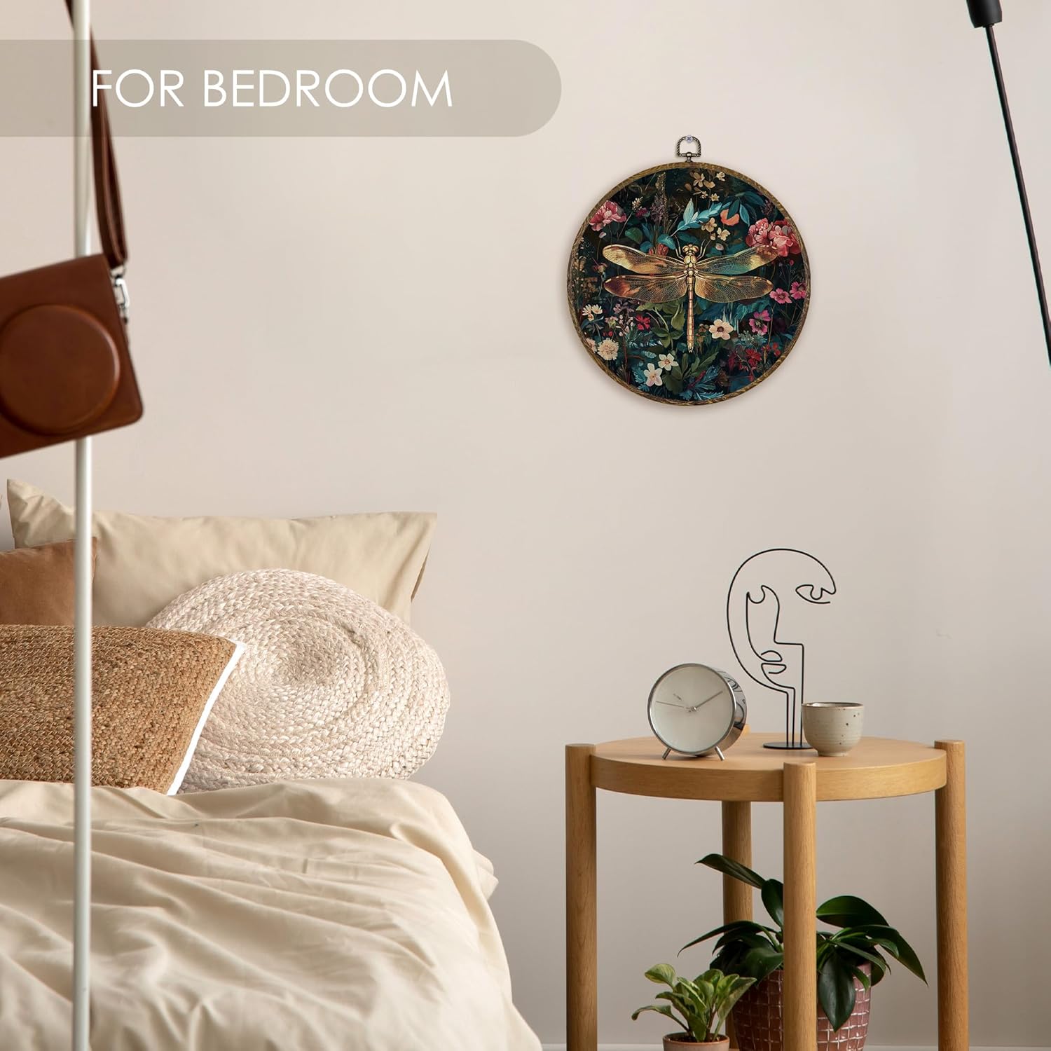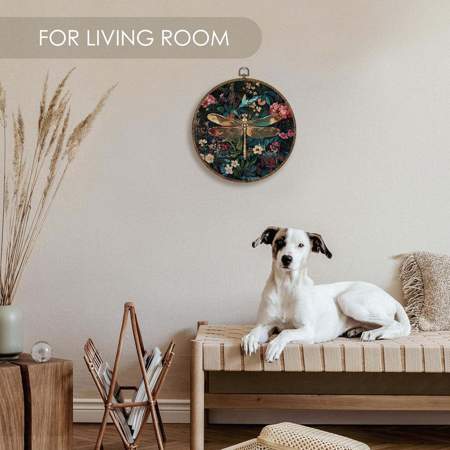- Premium Material: Crafted with textile canvas and high-quality digital printing (not embroidery), stretched over a round plastic frame with a wood-like finish that resists bending or warping.