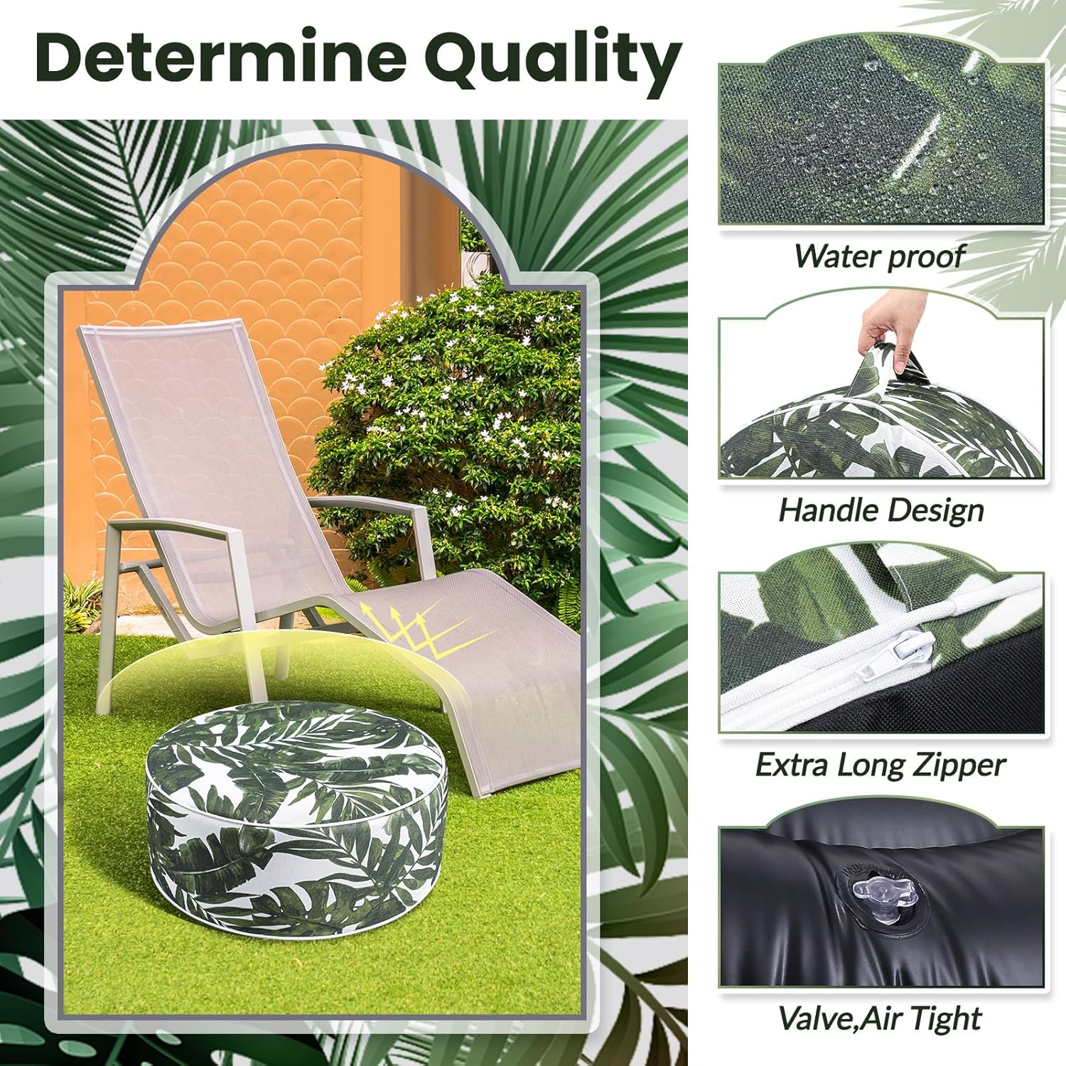 2 Pack Outdoor Inflatable Ottoman Waterproof Inflatable Pouf Foot Rest with Handle D21 x H9 Portable for Patio Camping Garden or Home