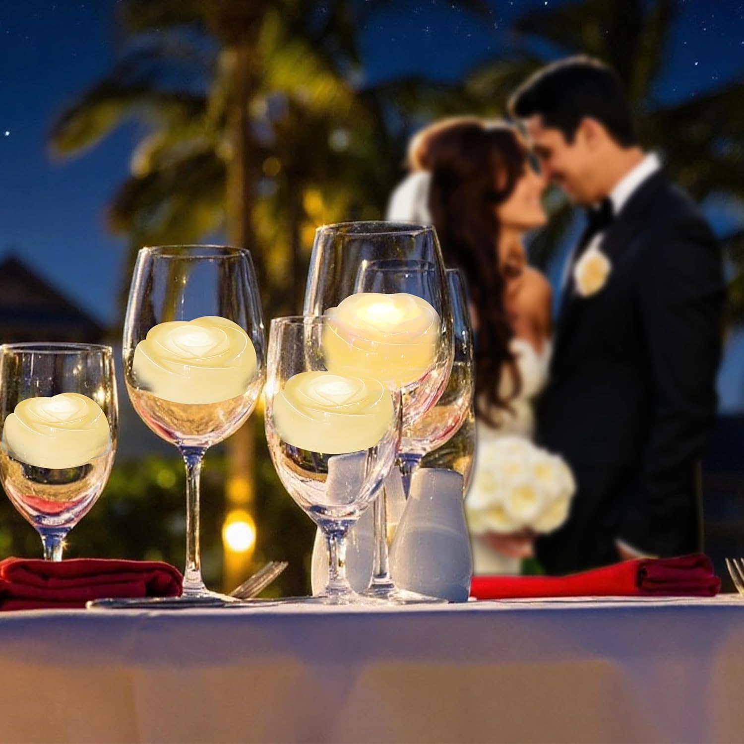 - Romantic and Elegant Champagne Glow: These ivory rose-shaped LED floating candles (D 2.83" x W 2.83" x H 1.42") bring the sparkle with their champagne-like glow. The chic design and warm yellow light add a touch of romance and style to weddings, dinners, or even bath time, turning every moment into pure magic