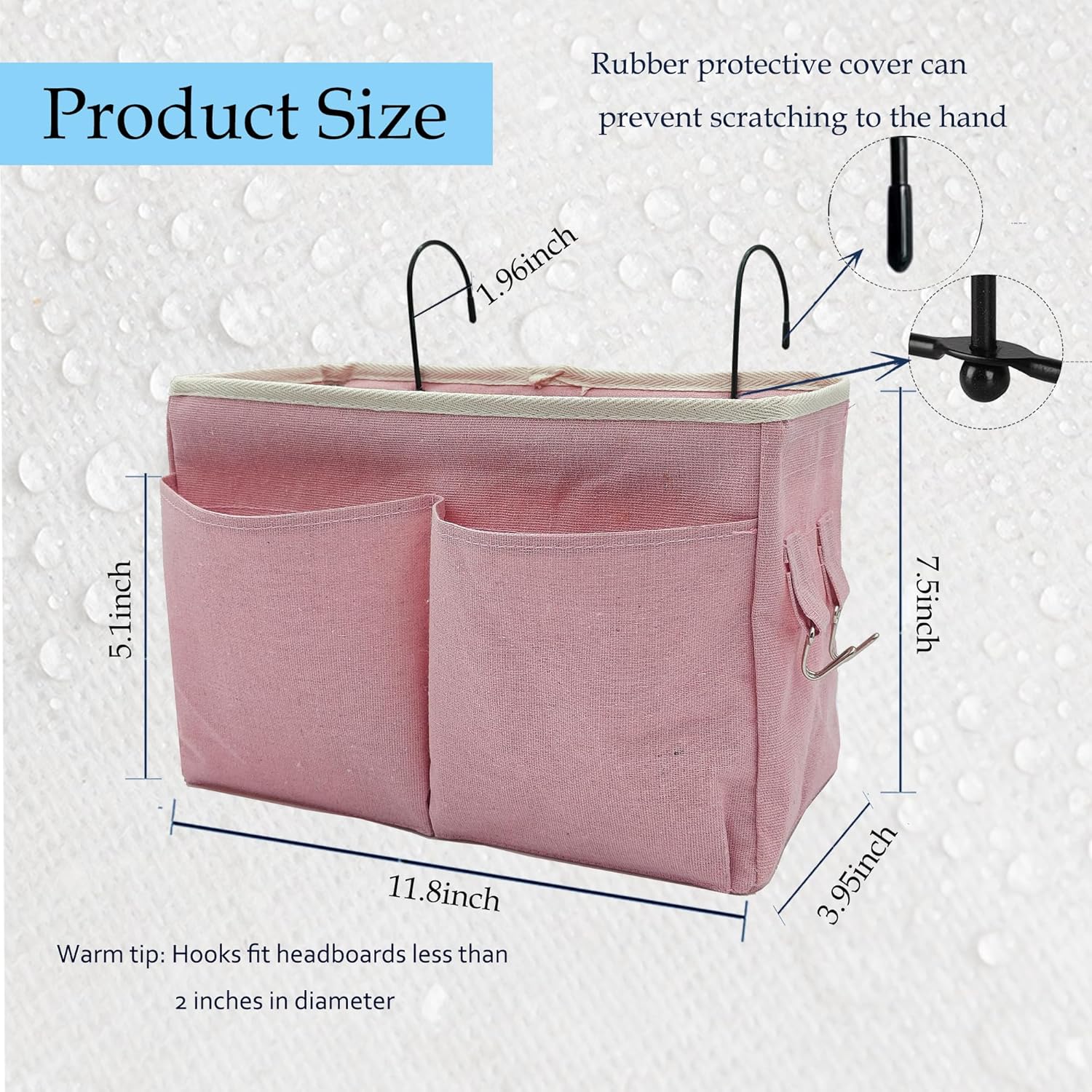 2-Pack Bedside Caddy Bedside Hanging Storage Basket Multi-Function Organizer Caddy for Bunk and Hospital Beds Dorm Rooms Bed Rails, Can be Placed Glasses Books Mobile Phones(2 pcs pink)