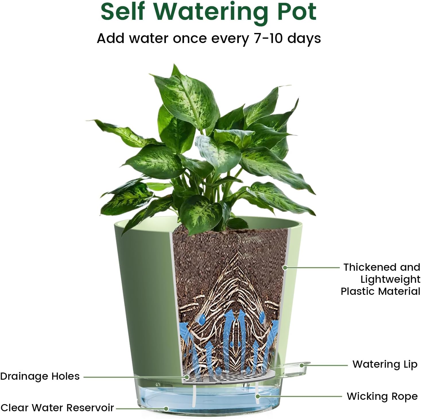 - Special Feature : Drainage Hole, Lightweight, Self Watering
