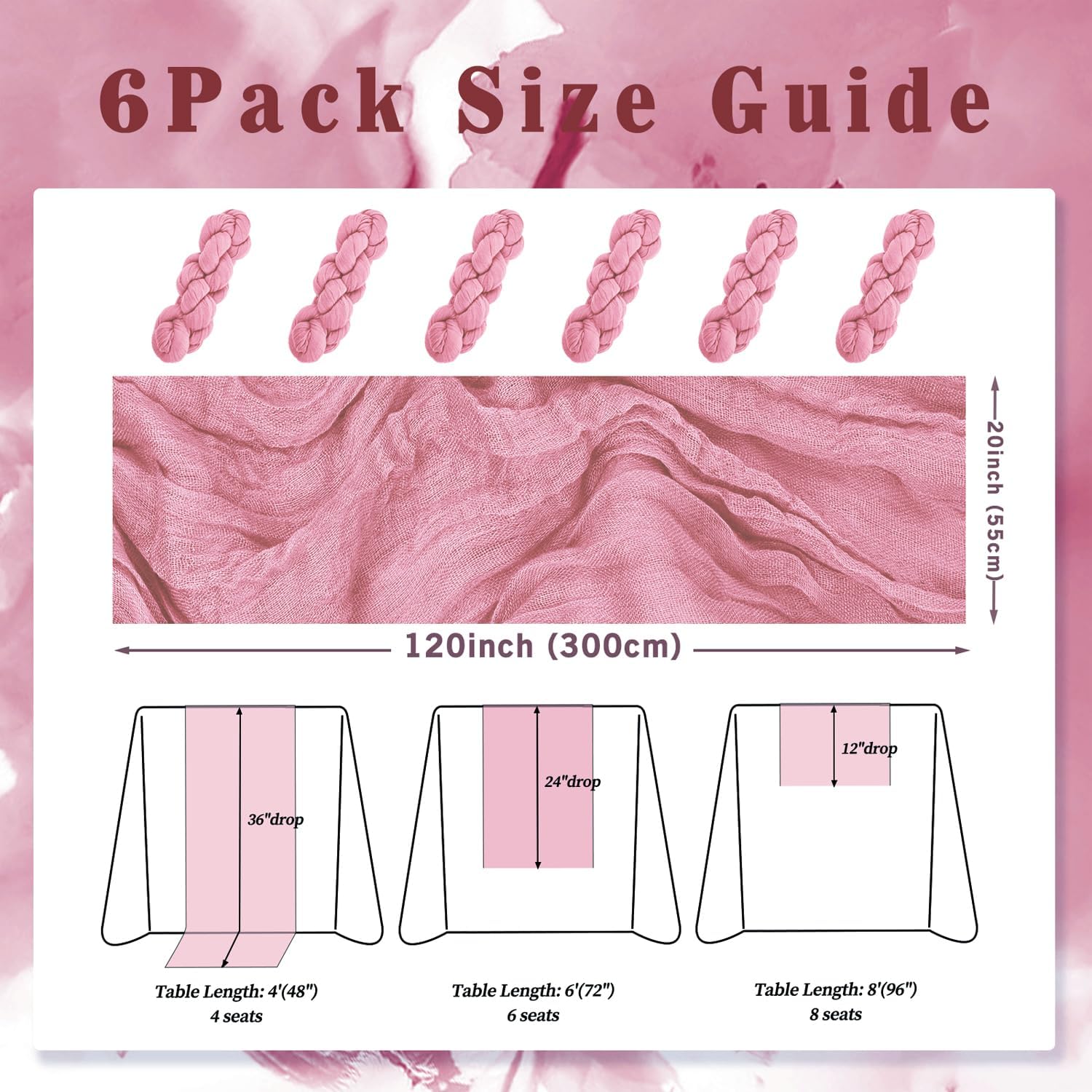 6 Pack Dusty Rose 10FT Cheesecloth Table Runner 20 x 120 Inch Long Rustic Gauze Fabric Cheese Cloth Table Runner for Wedding Bridal Baby Shower Table Decorations Boho Sheer Birthday Party Table Decor