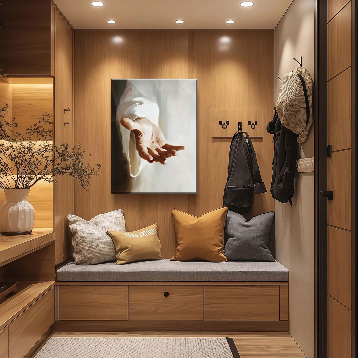 - Religious and Inspirational Art The image of Jesus’ hand, symbolizing compassion, love, and guidance, brings a profound spiritual depth to your home or office. This artwork is perfect for anyone who wants to express their faith and devotion through beautiful art.