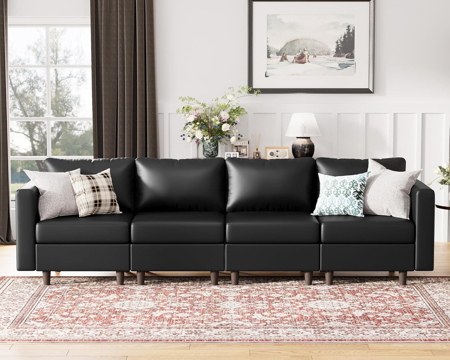 - đź’ˇEffortless-Clean Faux Leather Sofa: Waterproof and stain-resistant faux leather stays spotless. Wipe spills clean in 10 seconds with a damp cloth. The scratch-resistant textured surface feels soft and smooth, maintaining a stylish look even with pets and kids.