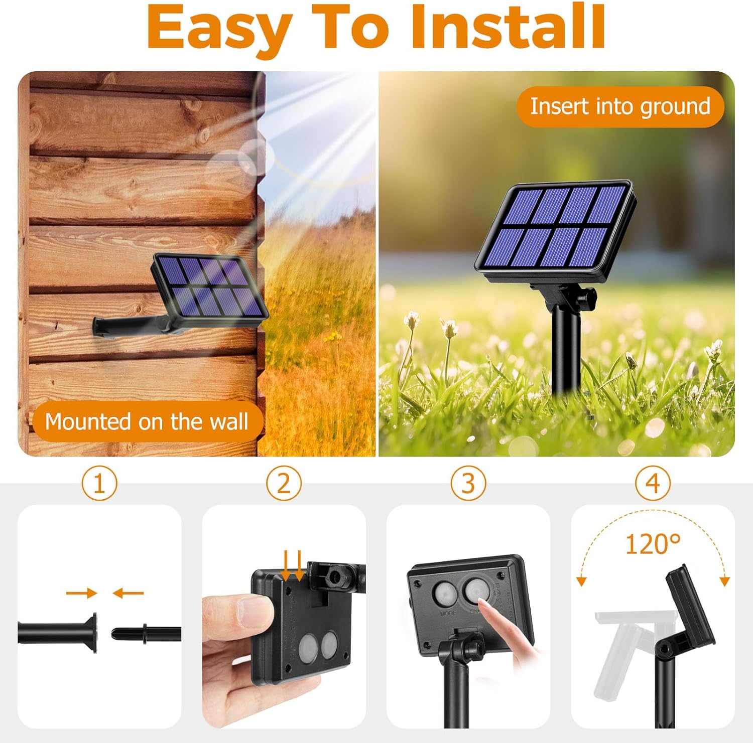- Waterproof Design for All Weather: Light string and solar panel are IP65 waterproof to withstand any weather, either rain, sun, or snow. Safe for outdoor use, Don't worry about short circuits or bad weather damage (can't soak in water). Emit a magical blue lights after rain, romantic and beautify the yard