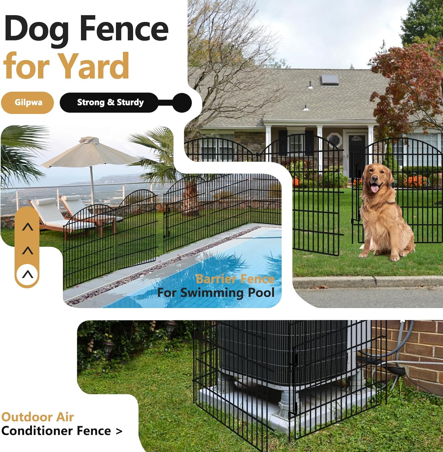 - EASY TO INSTALL: Our dog fence for the yard are equipped with metal stakes, the smooth arch shape design also makes the connection of the two fence panels form a groove, it is easy to install with a drop hammer. To install, simply insert the metal stake into the eyelet between the two pieces of fence to connect them, and choose a good installation location to install by tapping the metal stake directly. The fence is expandable, if you need to expand the fence, it can be easily done as well.