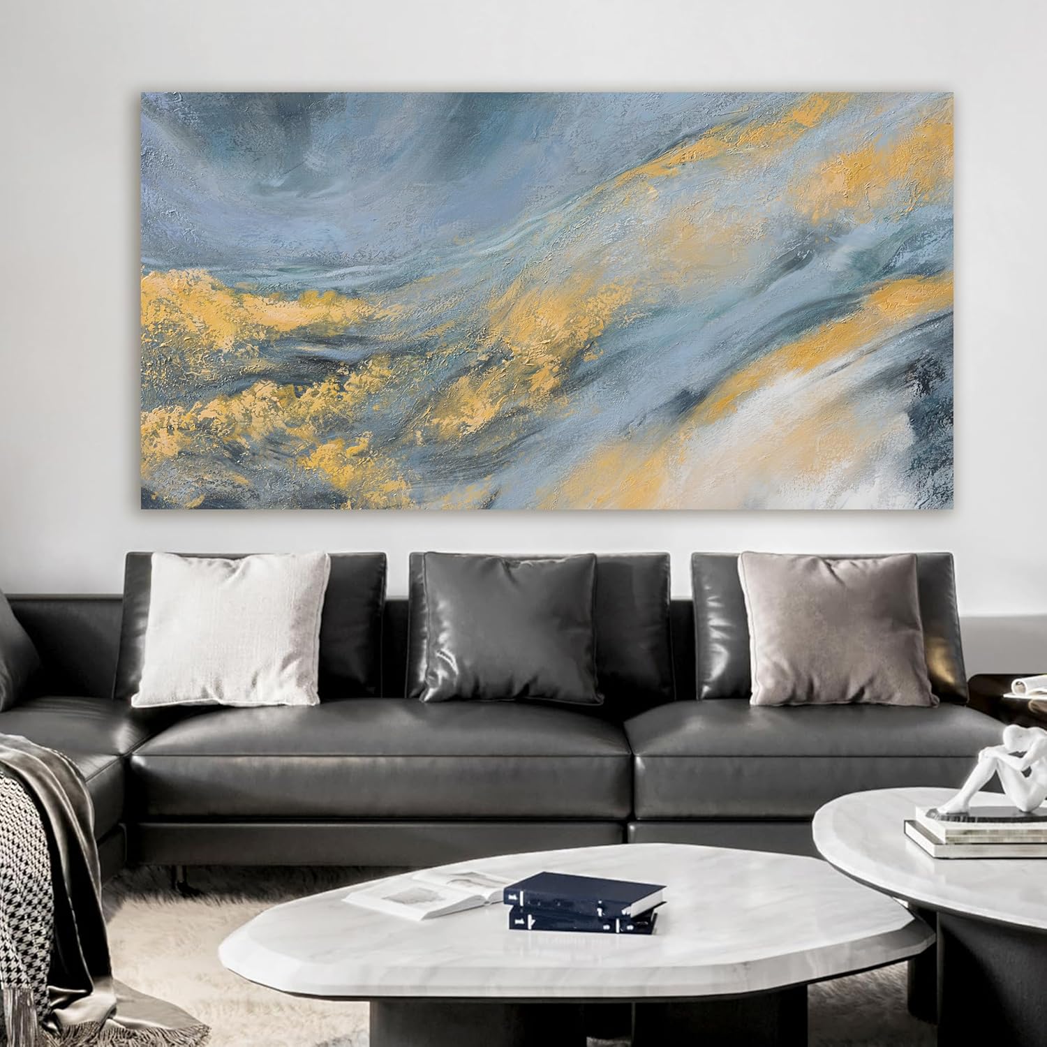Abstract Wall Art Decor Large Modern Blue Wall Art Prints Abstract Canvas Art Wall Decor Large Canvas Wall Art for Living Room Gold Wall Art Decorations Artwork for Walls Bedroom Office Decor 29"X58"