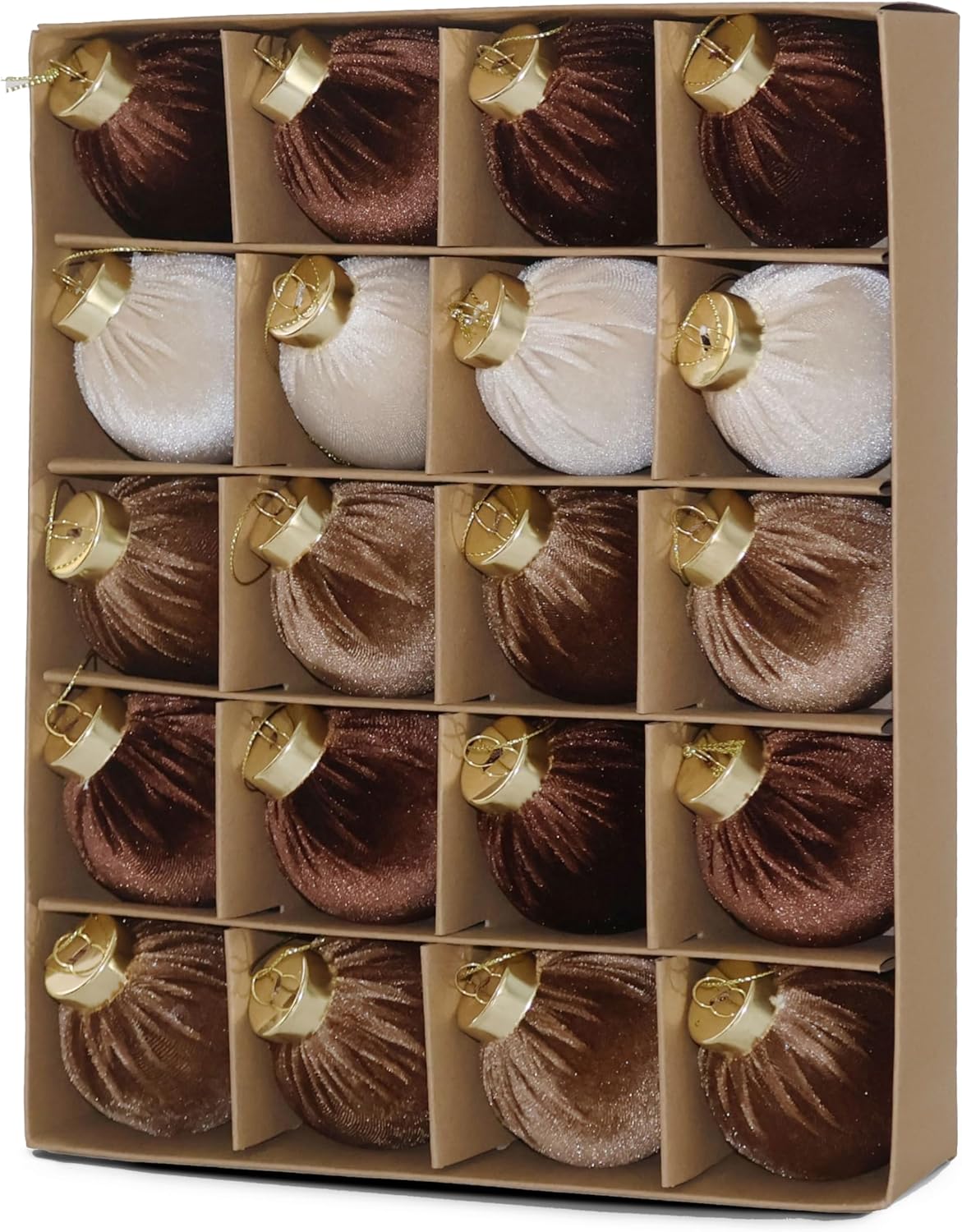 20PCS Velvet Ornaments for Christmas Tree, 2.36INCH Multicolor Flocked Christmas Ornaments Decorations Balls Set Decor
