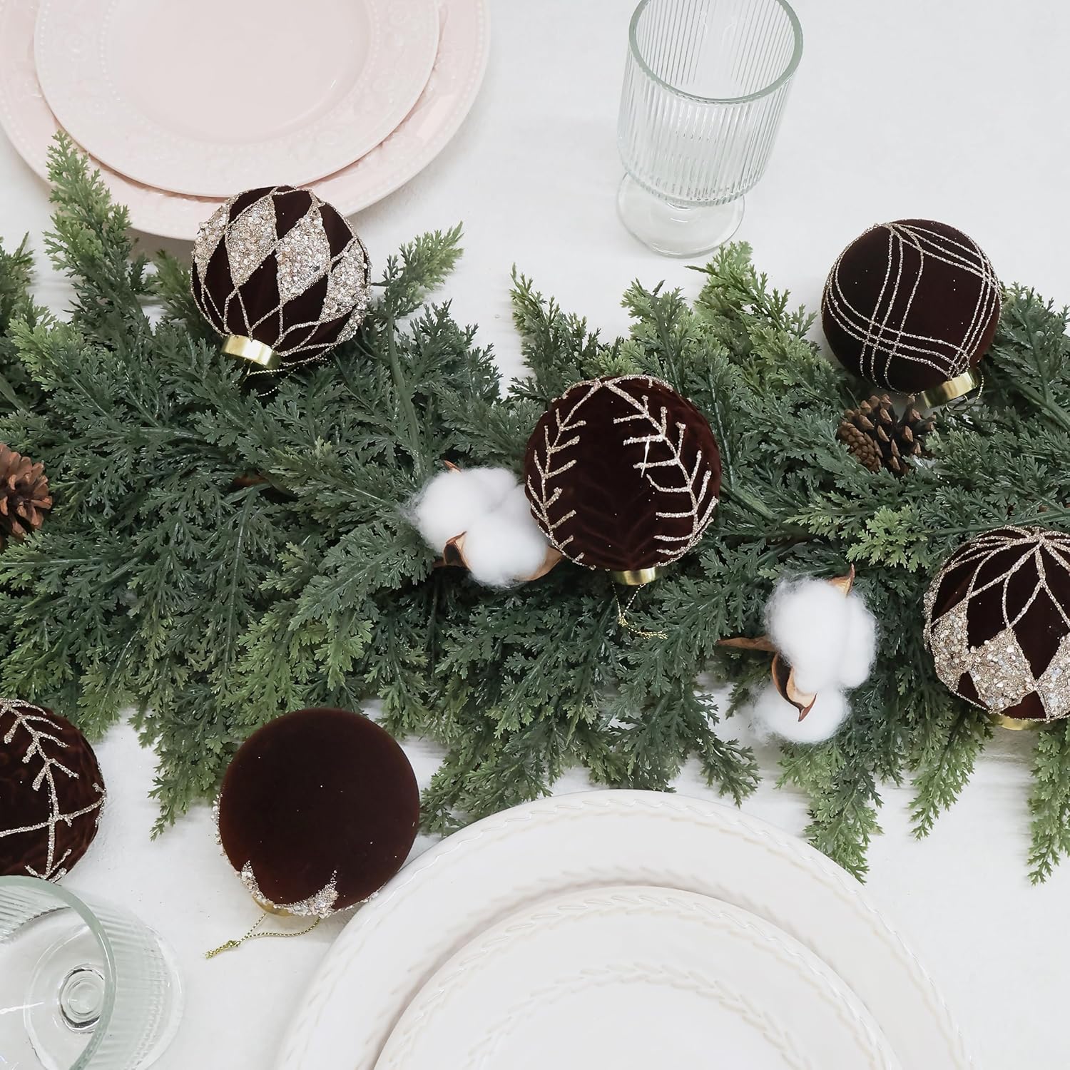 4inch Velvet Ornaments for Christmas Tree, 9PCS Glitter Flocked Christmas Ornaments Decorations Balls Set Decor Brown