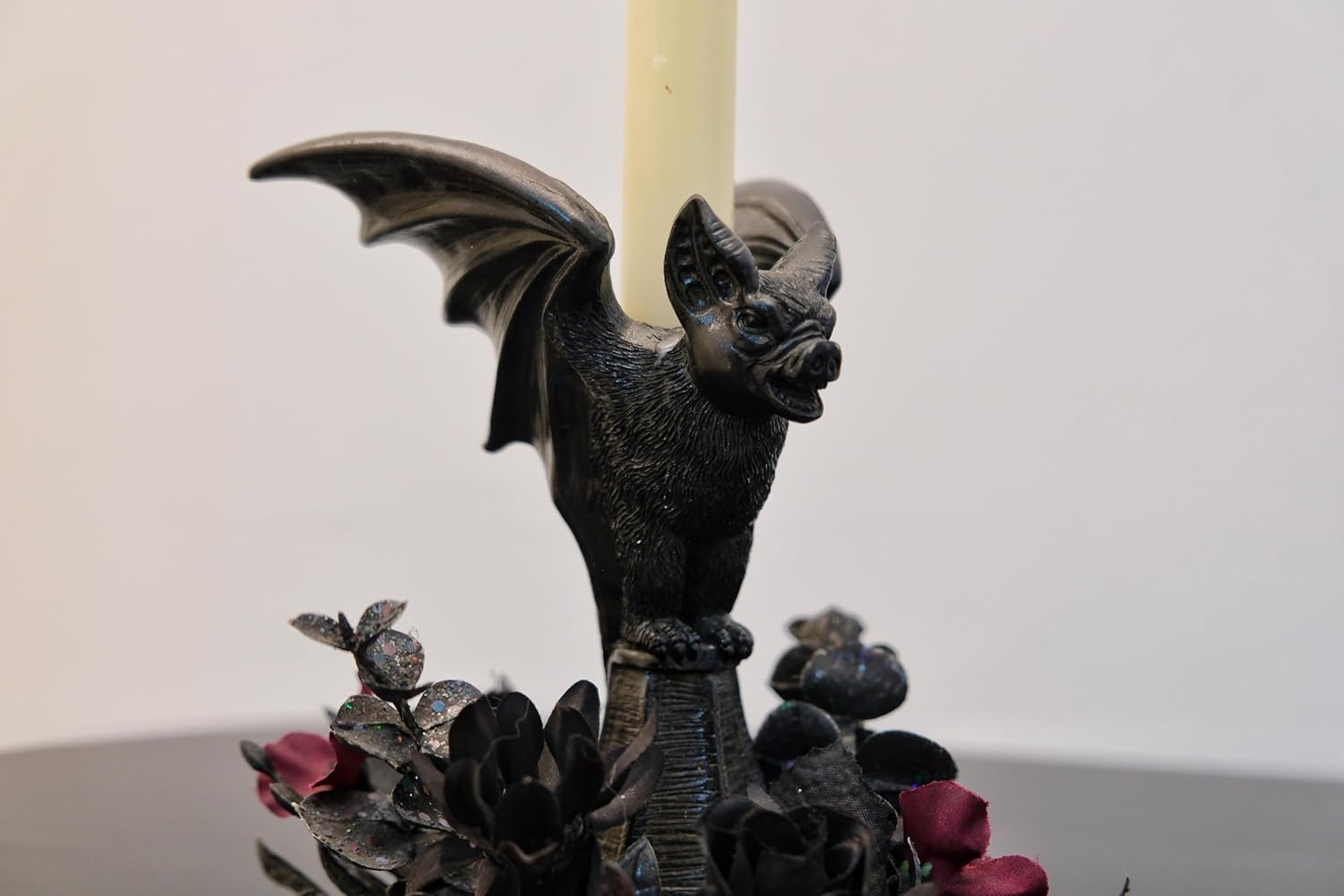 - GOTHIC DESIGN: Features a dramatic black resin bat figure perched atop a decorative base, perfect for Halloween and gothic-themed decor