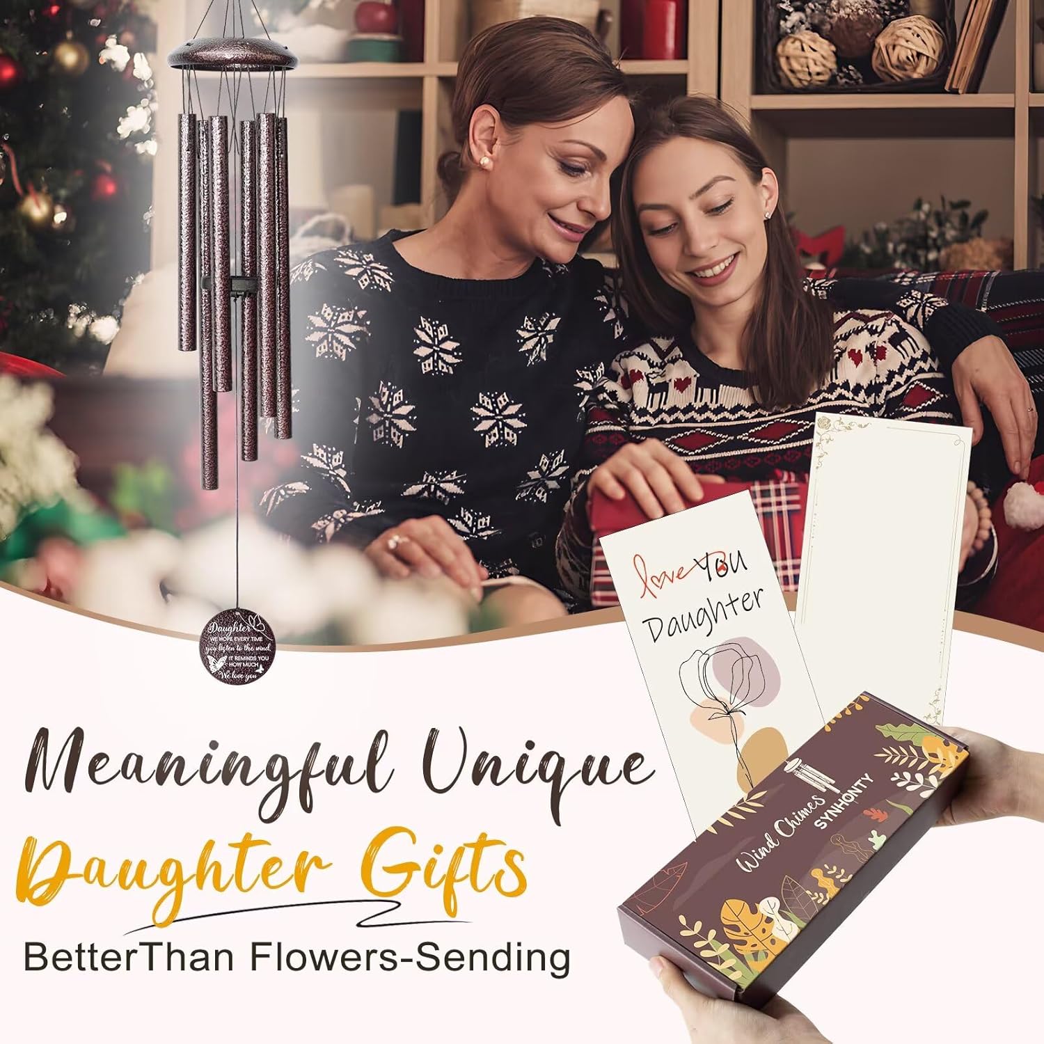 - 2. Meaningful Love Gifts for Daughter:The pendant of the windchimes is printed with unique thanks blessings on both sides,Gift-ready in elegant packaging with a beautiful blank card for personal wishes. it can creating a peaceful and calming ambiance to help relax and unwind,perfect gifts for grown Daughter,daughter in law,adult Daughter,Girls etc.