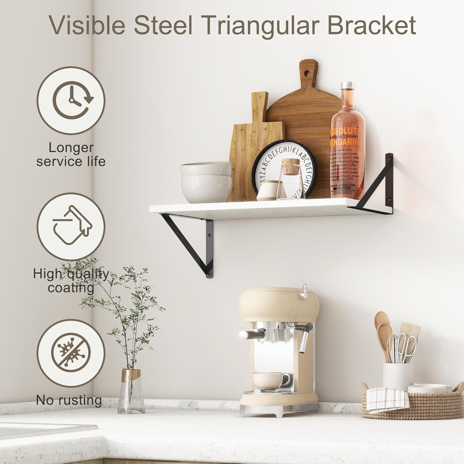 - ăFARMHOUSE RUSTIC WALL SHELFăThese floating shelves are made of premium engineered wood board and visible triangular bracket. The rustic wooden grain surface add character and warmth to any modern or traditional interior with these deep floating shelves, contrast shelves at staggering heights on the wall or mount side-by-side or in the corner for a clean streamlined look.