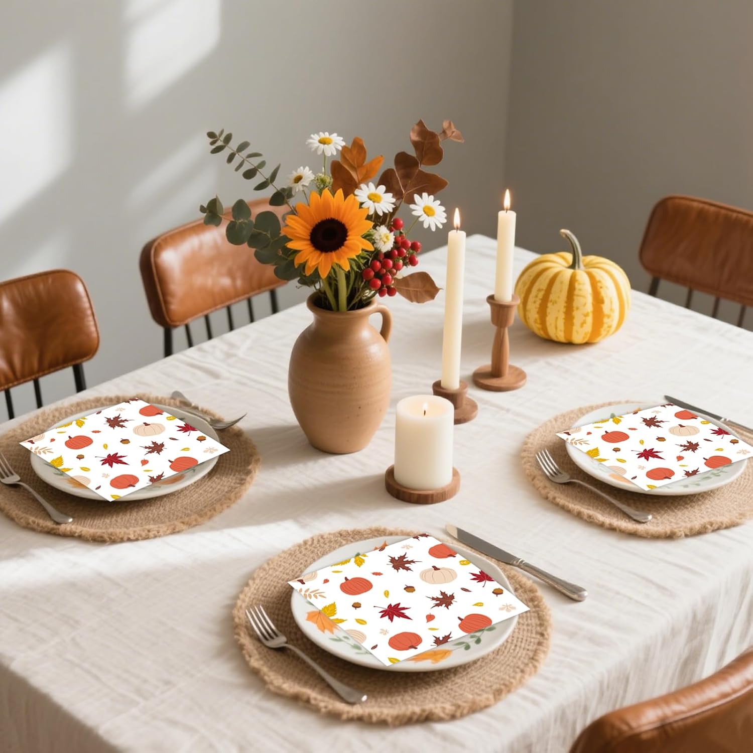 - š¾Versatile Use: These fall-themed napkins are perfect for Thanksgiving dinners, harvest parties, Halloween celebrations, and everyday autumn meals. They also make great additions to weddings, baby showers, and seasonal dĆ©cor, combining functionality with festive charm.