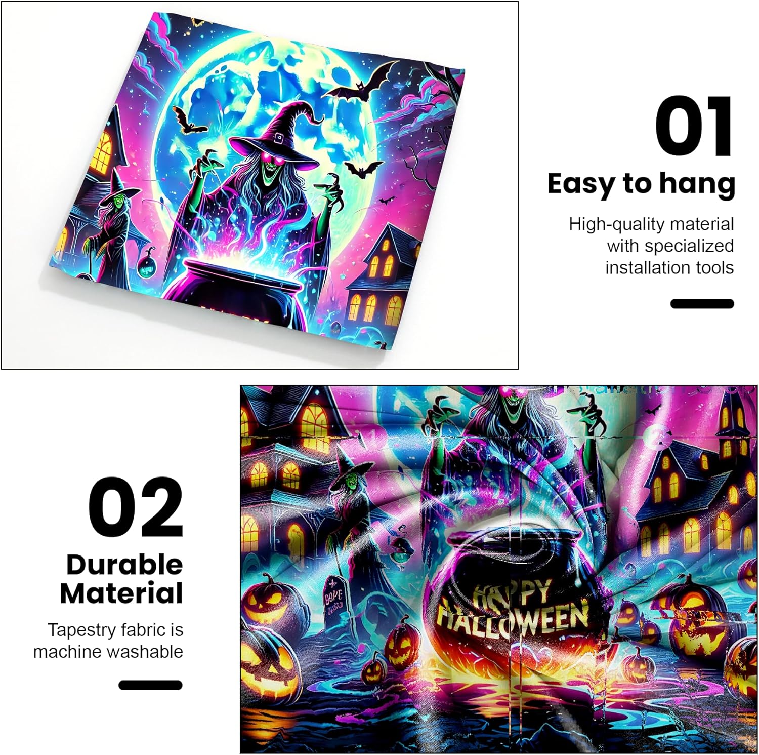 - 【Spooky UV Magic】This Halloween tapestry glows vividly under blacklight, creating an eerie, eye-catching display perfect for haunted houses, parties, or year-round horror-themed decor.