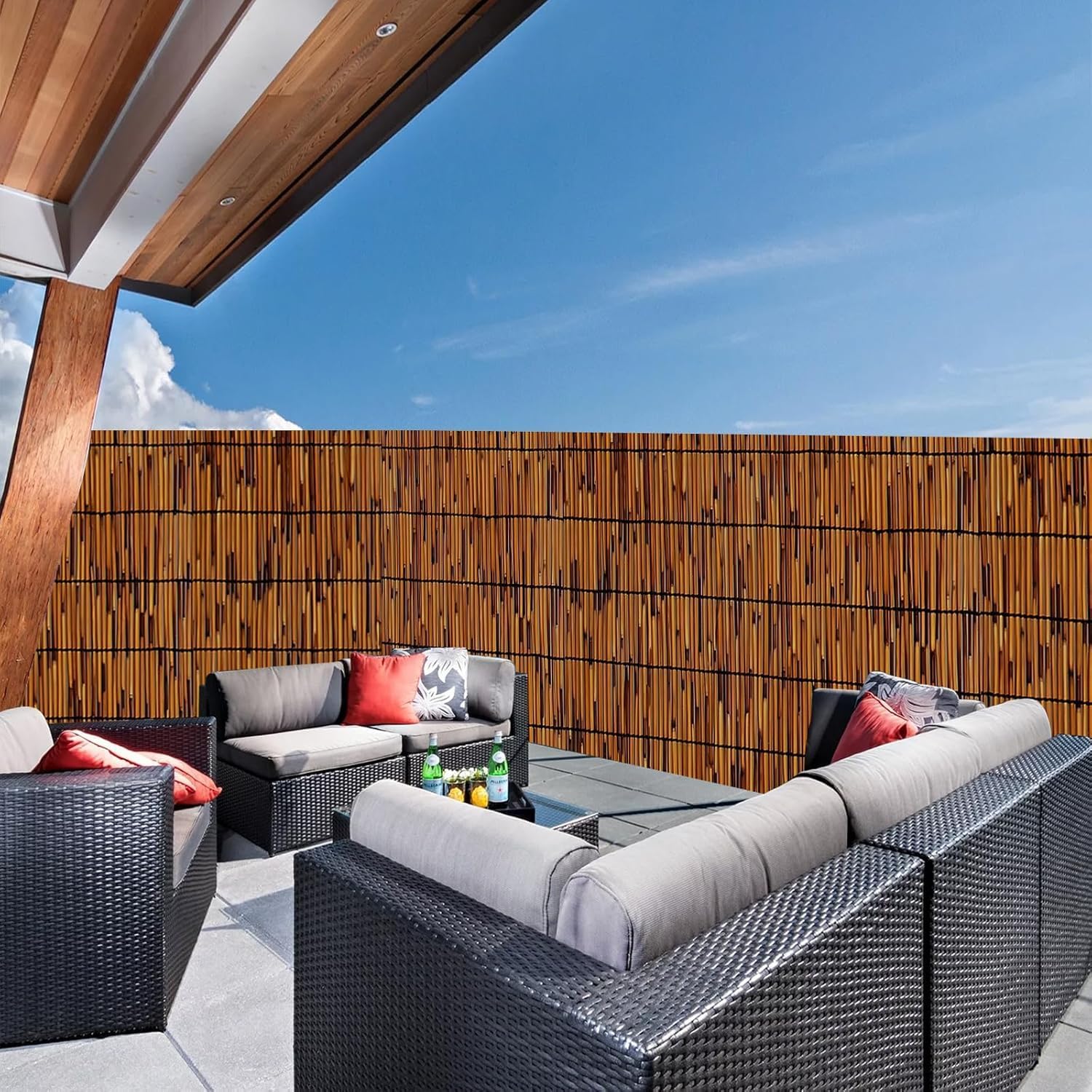 - 【80% Blackout And Privacy】The bamboo reed fencing blocks the sun and the view of neighbours. In addition, the 80% blackout reed fencing allows light to pass through, providing the necessary light for reading or everyday activities