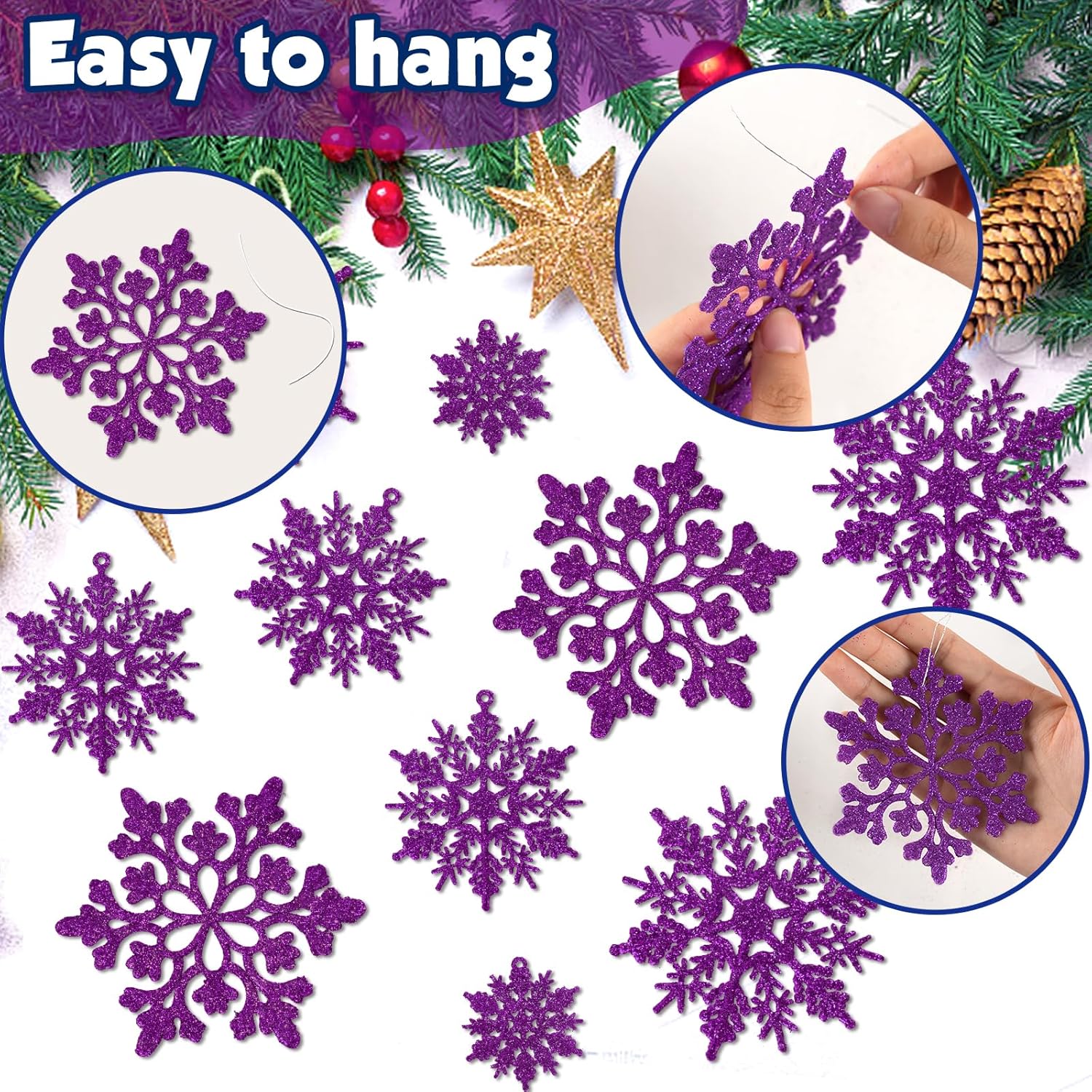 - Package Includes: You will receive a set of 36 deep purple snowflake ornaments in 2 designs, featuring 4different sizes: 8pcs for 4.2 inches, 8pcs for 4 inches, 10pcs for 3 inches, and 10pcs for 1.8 inches. The Christmas snowflakes decorations also includes a bundle of strings for easy assembly and hanging