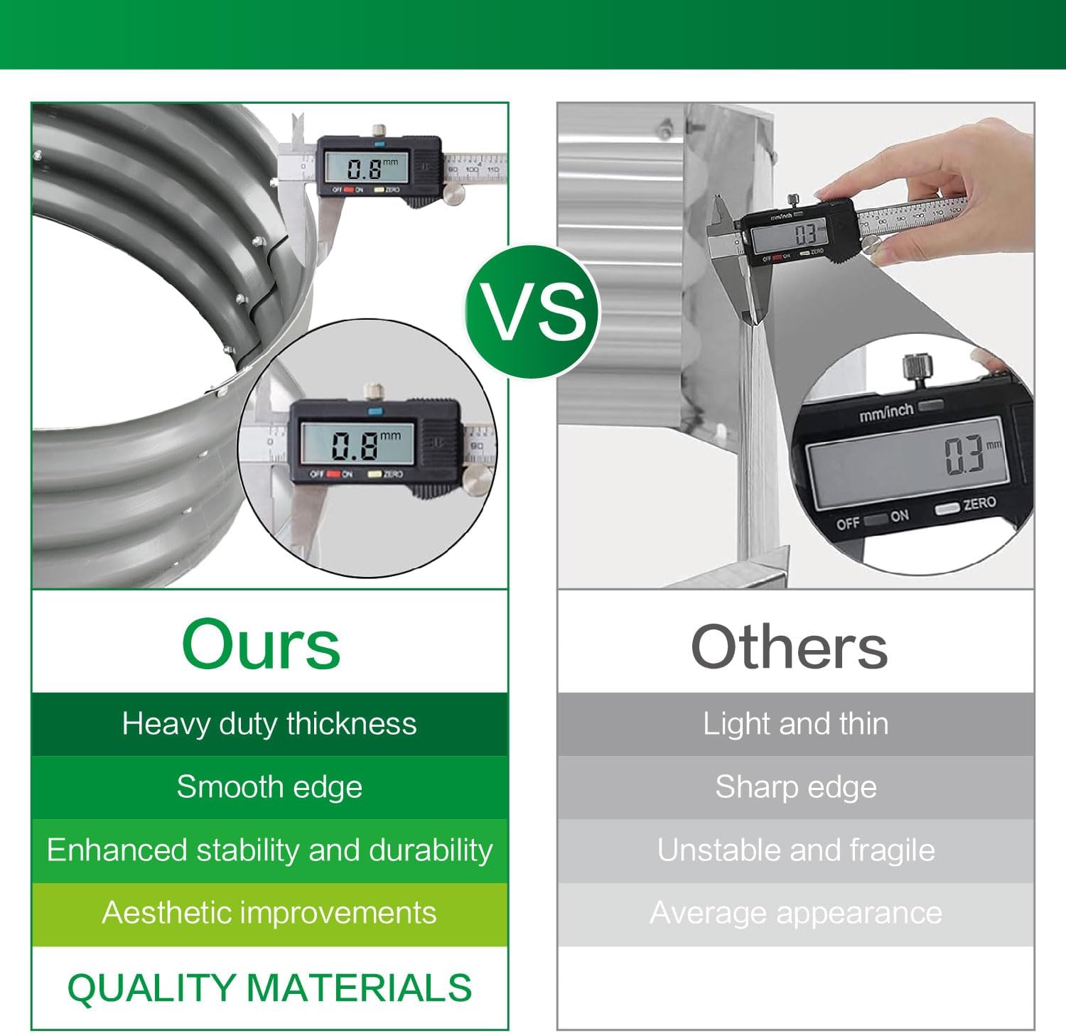 - DURABLE GALVANIZED MATERIAL: Gardmax outdoor raised garden beds are made from 0.8mm heavy-duty galvanized material, ensuring exceptional longevity and durability. It is more resistant to high temperatures and freezes, making it very suitable for outdoor use. And this metal will survive the elements for decades, but when you're ready to replace it, the metal is entirely recyclable
