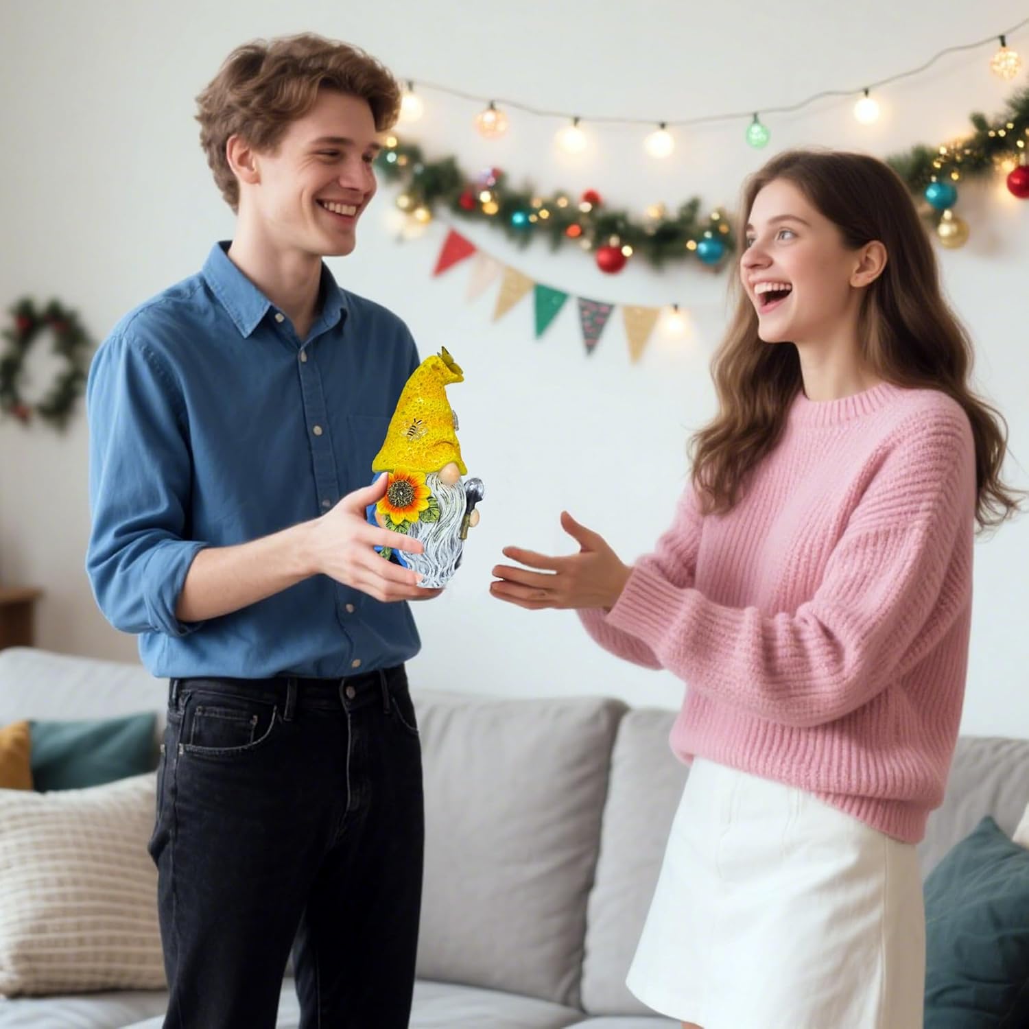 - Adorable solar gnomes statues featuring charming butterfly, bee, and sunflower designs, perfect for adding whimsy to your garden decor. These solar garden gnomes light up at night, creating a magical glow in your outdoor space.