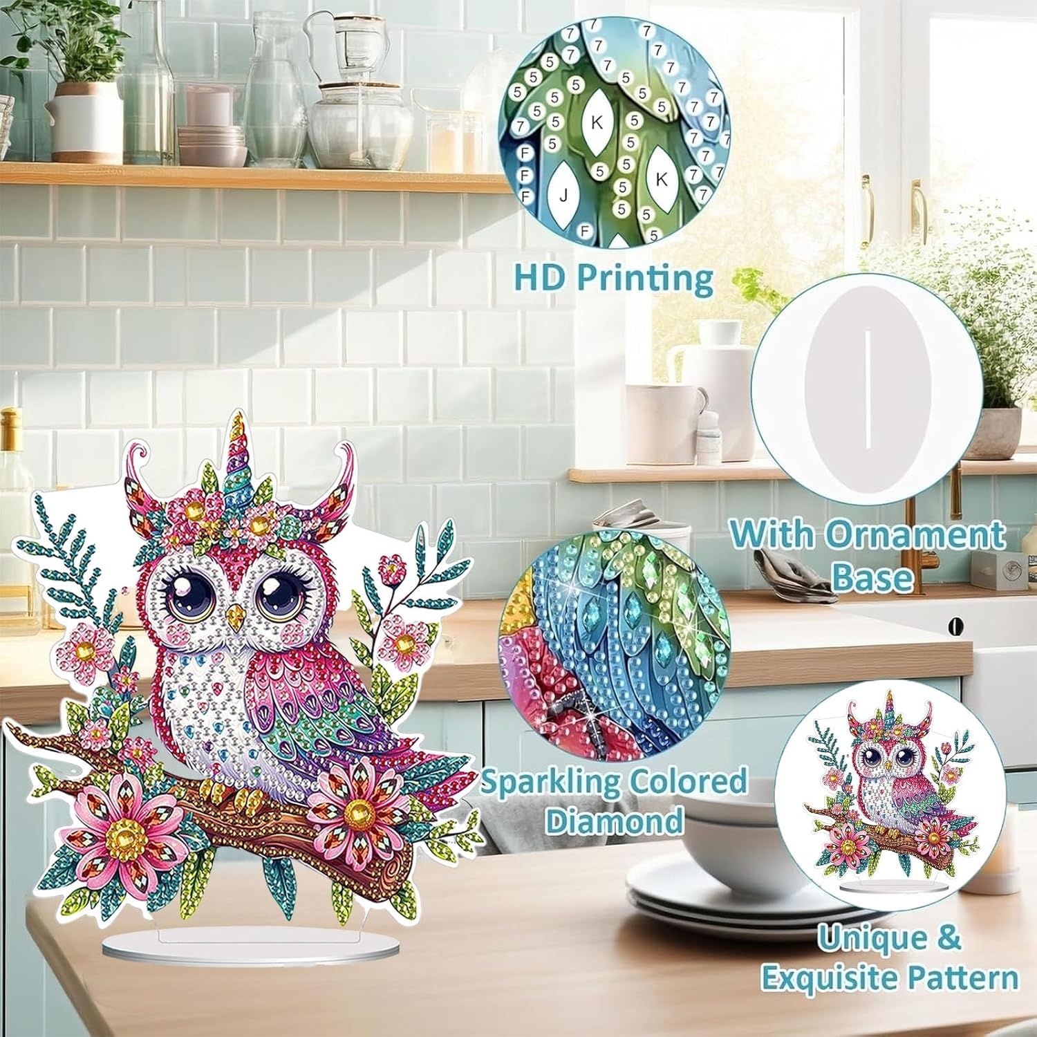 Diamond Painting Kits for Adults Beginners, 5D Full Drill Owl Crystal Art Desktop Ornament, DIY Single Sided Home Office Desk Decor, Creative Craft Gift Set with Tools