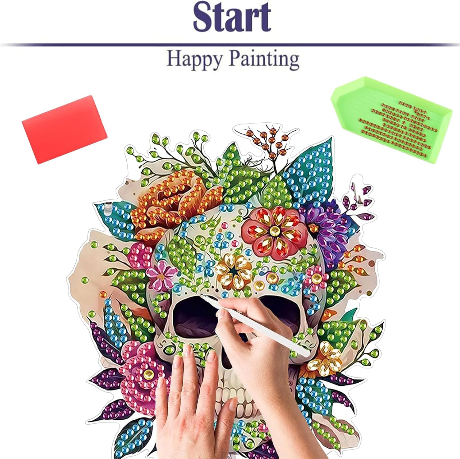 Diamond Painting Kits for Adults Beginners, 5D Full Drill Skull Crystal Art Desktop Ornament, DIY Single Sided Home Office Desk Decor, Creative Craft Gift Set with Tools