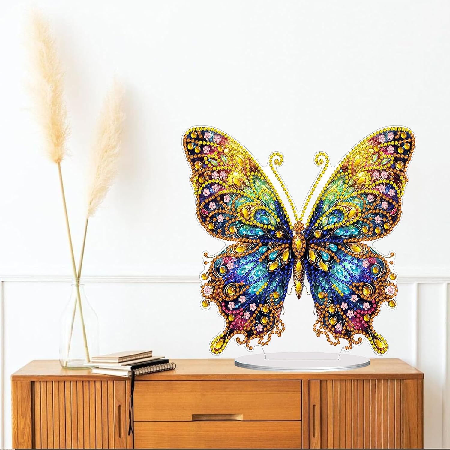 Diamond Painting Kits for Adults Beginners, 5D Full Drill Flowers and Butterfly Crystal Art Desktop Ornament, DIY Single Sided Home Office Desk Decor, Creative Craft Gift Set with Tools