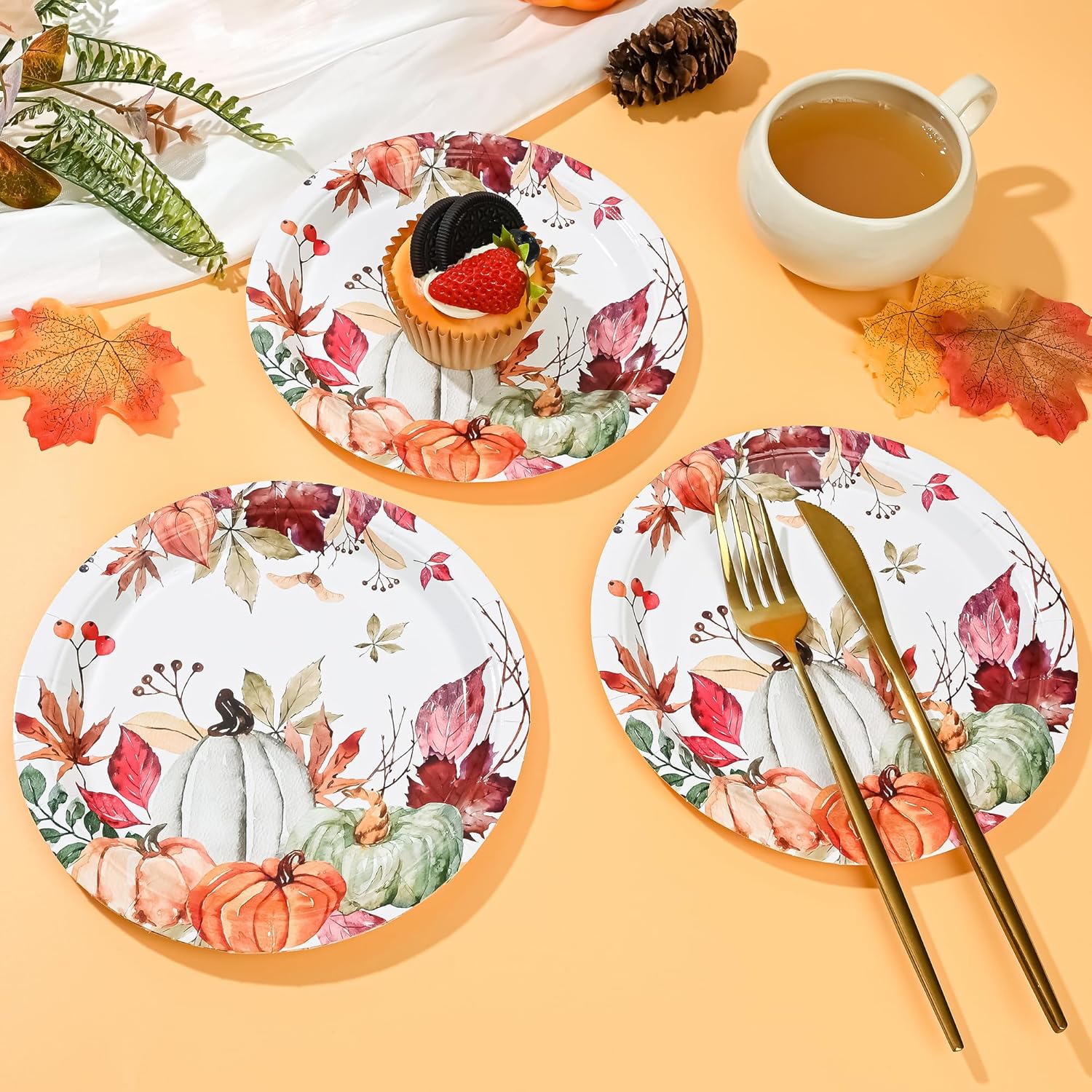 - Premium Fall-Themed Design: Featuring charming pumpkin and maple leaf watercolor patterns, these rustic disposable plates bring cozy autumn vibes to your Thanksgiving table decor, harvest party supplies, or farmhouse-themed celebrations