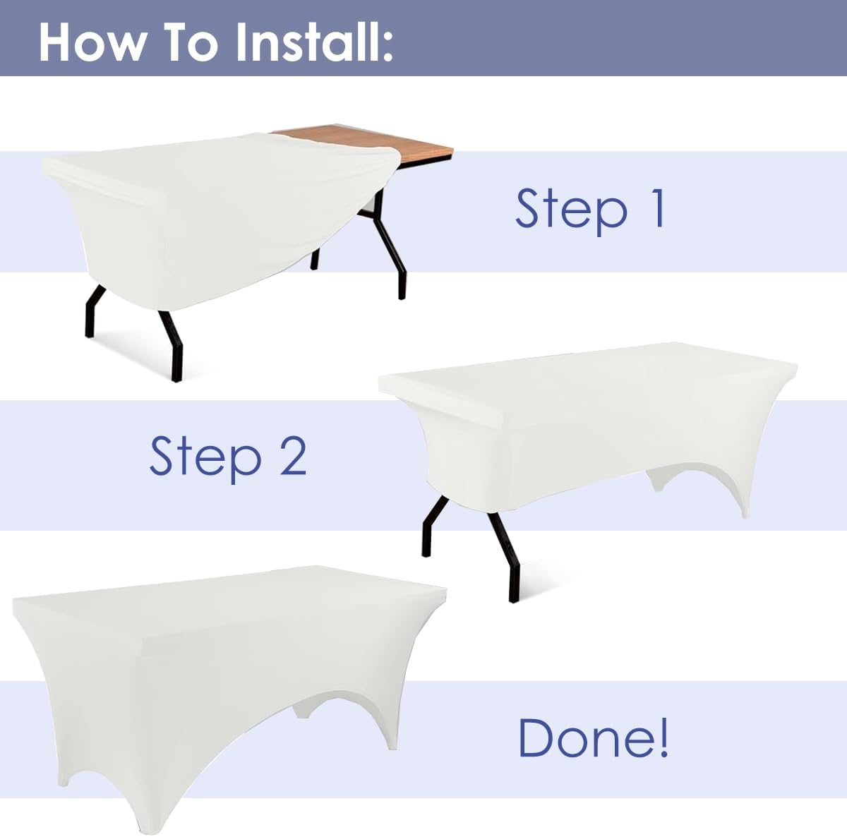 - Perfect Fit and Secure Design: Designed for 4-foot tables (48L x 30W x 30H Inches), this two-way stretch spandex cover features reinforced leg pockets to keep it firmly in place, preventing slipping for a sleek, professional look.