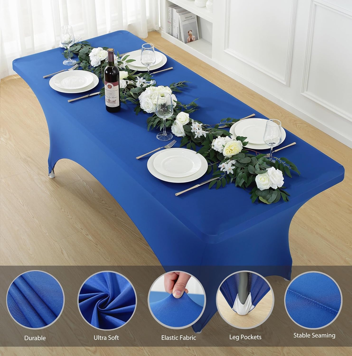 - Durable and Stretchable: Made from 90% polyester and 10% spandex, This stretch table cover is wrinkle-resistant and designed for repeated use. Its durable fabric ensures a secure fit without the need for ironing.