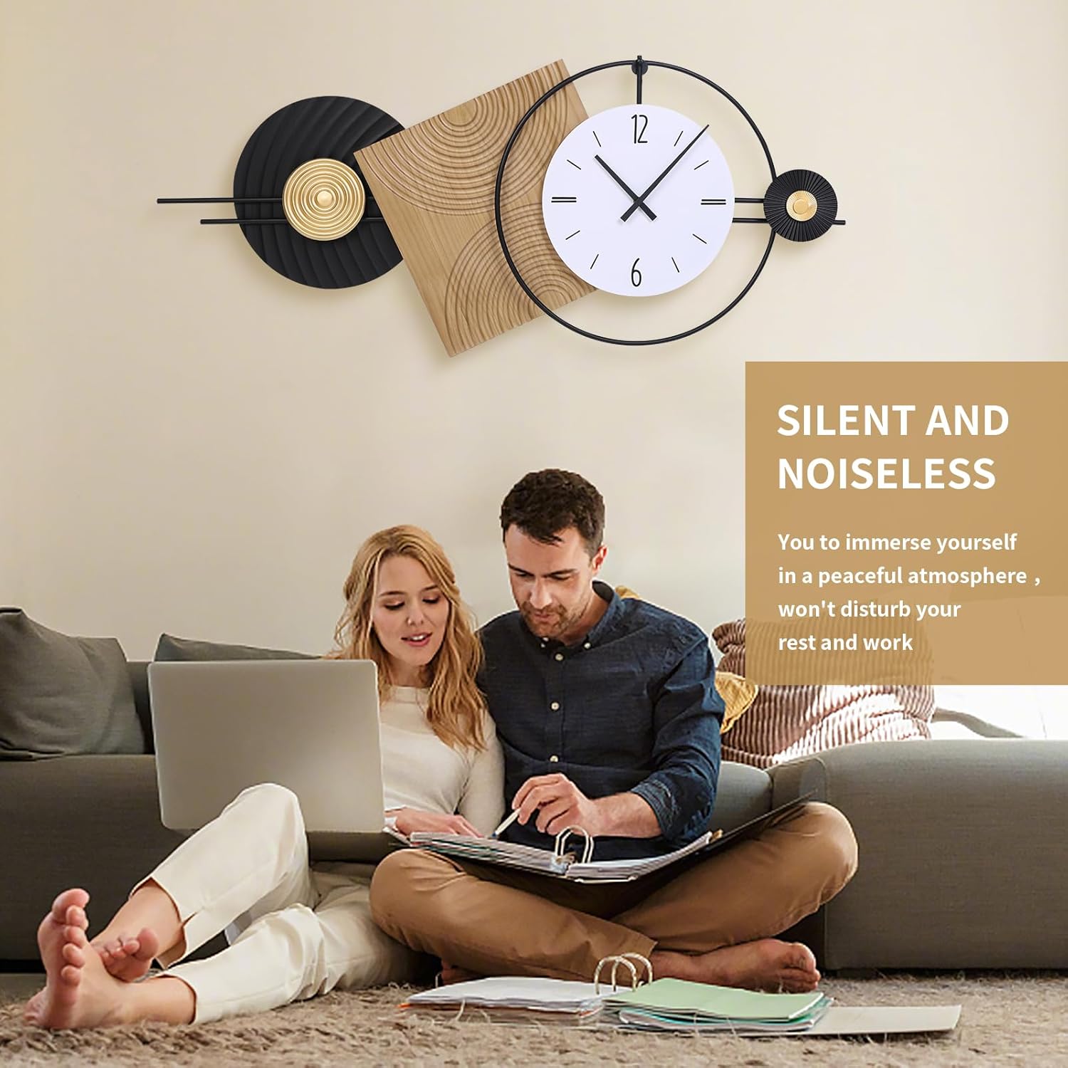 37.7X21Inch Large Modern Wall Clock Geometric Dial-Solid Wood Metal Frame Silent Non Ticking Wall Clocks for Living Room, Bedroom Decoration, Contemporary Home Wall Decor Gift Idea