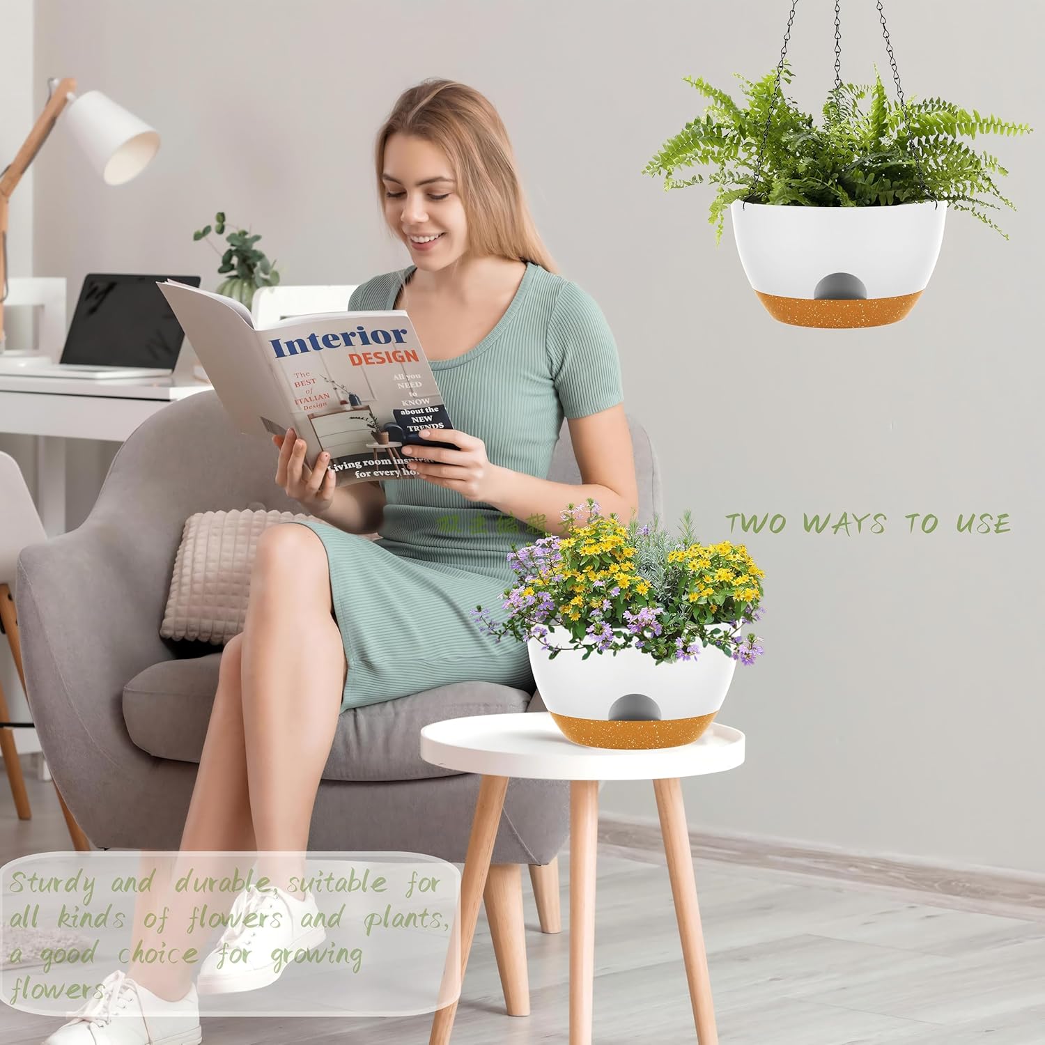 - 【Minimalist Modern Design】Trendy Colors and a Modern look allow this decorative Pot to fit into any Indoor and Outdoor setting. these 12" Hanging Pots offer generous space for your greenery. Good for creating eye-catching botanical arrangements