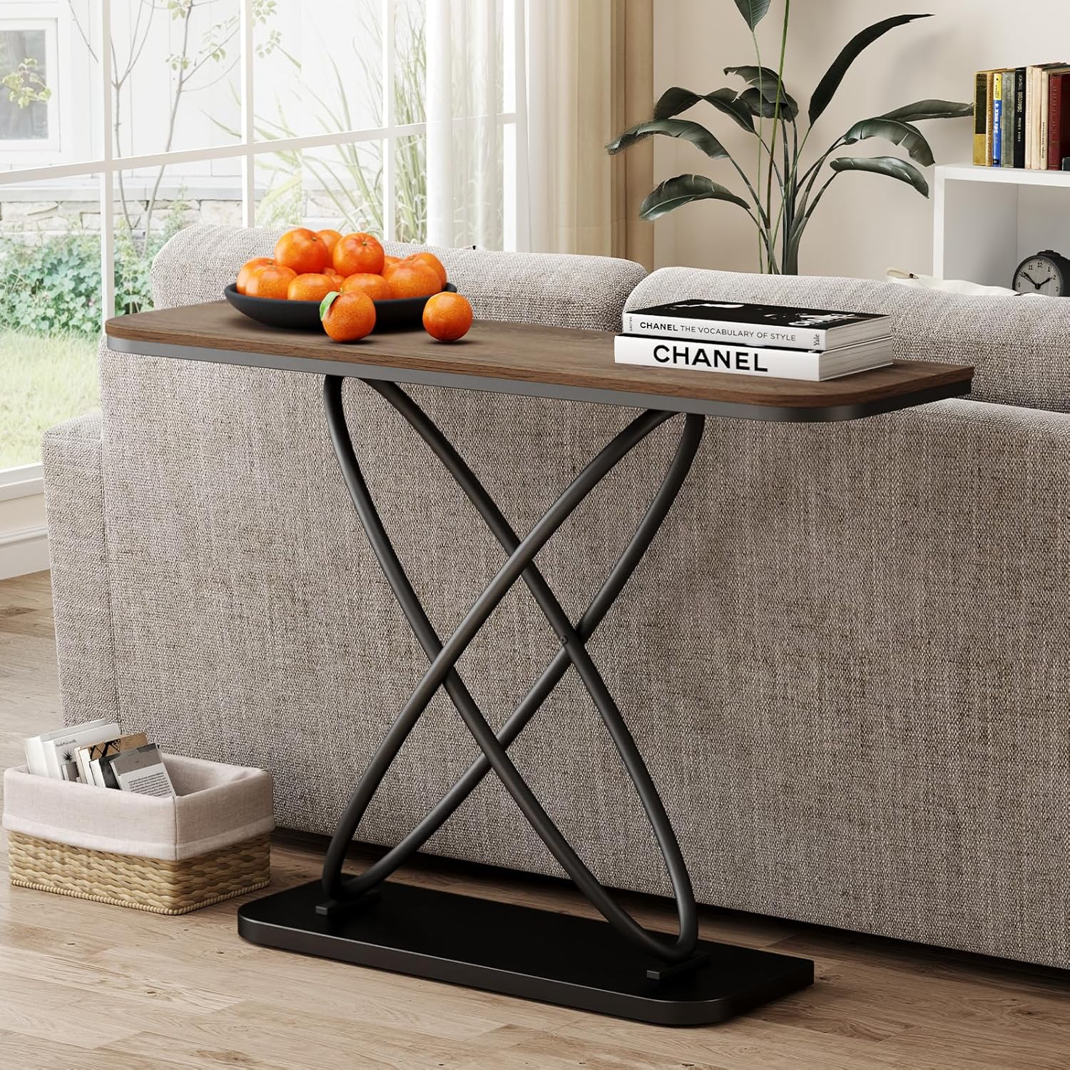 - ăModern Industrial Styleă- Featuring a rustic wood-grain tabletop paired with a matte black metal frame, this industrial console table boasts a unique double-oval cross-leg design with clean, simple lines. Its modern industrial aesthetic makes it a striking focal point in your home