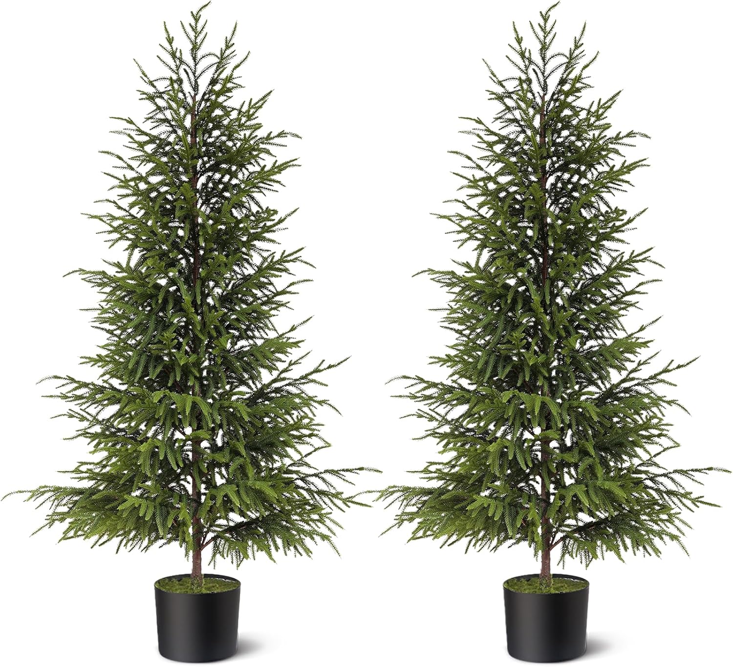 - Quantity and Size : Package includes 2 artificial norfolk pine tree,norfolk pine tree is 4 feet in length with black pot (6" Diameter*5" Height).