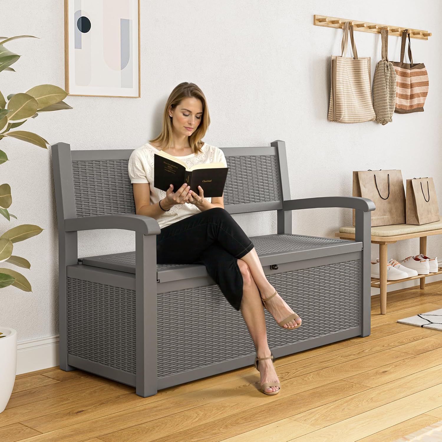 - All-Weather Protection: Crafted from weather-resistant resin, this outdoor bench with withstands sun exposure, moisture, and temperature changes while maintaining its structural integrity season after season, this porch storage stands tough for long-lasting protection.