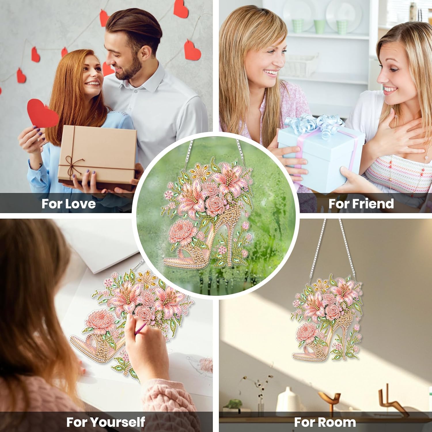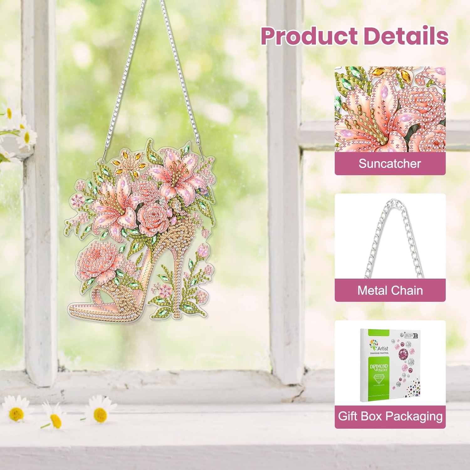 EOBROMD Diamond Hanging Art Kits for Adults, High Heel Diamond Art Painting Suncatcher, DIY Special Shaped Rhinestone Kits for Adults, Window Pendants Home Garden Wall Hanging Ornament