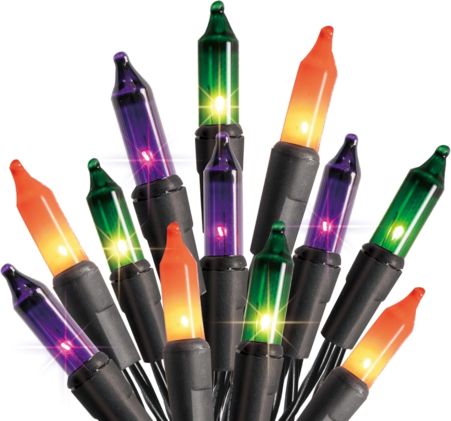 - Dimensions and Package Includes: 1 x 20-foot light string, 1 x spare fuse, 4 x additional incandescent bulbs. The length of the Halloween mini light string is 18.5 feet, and the lead is 1.5 feet. Length between bulbs: 6.5 cm / 2.55 inch