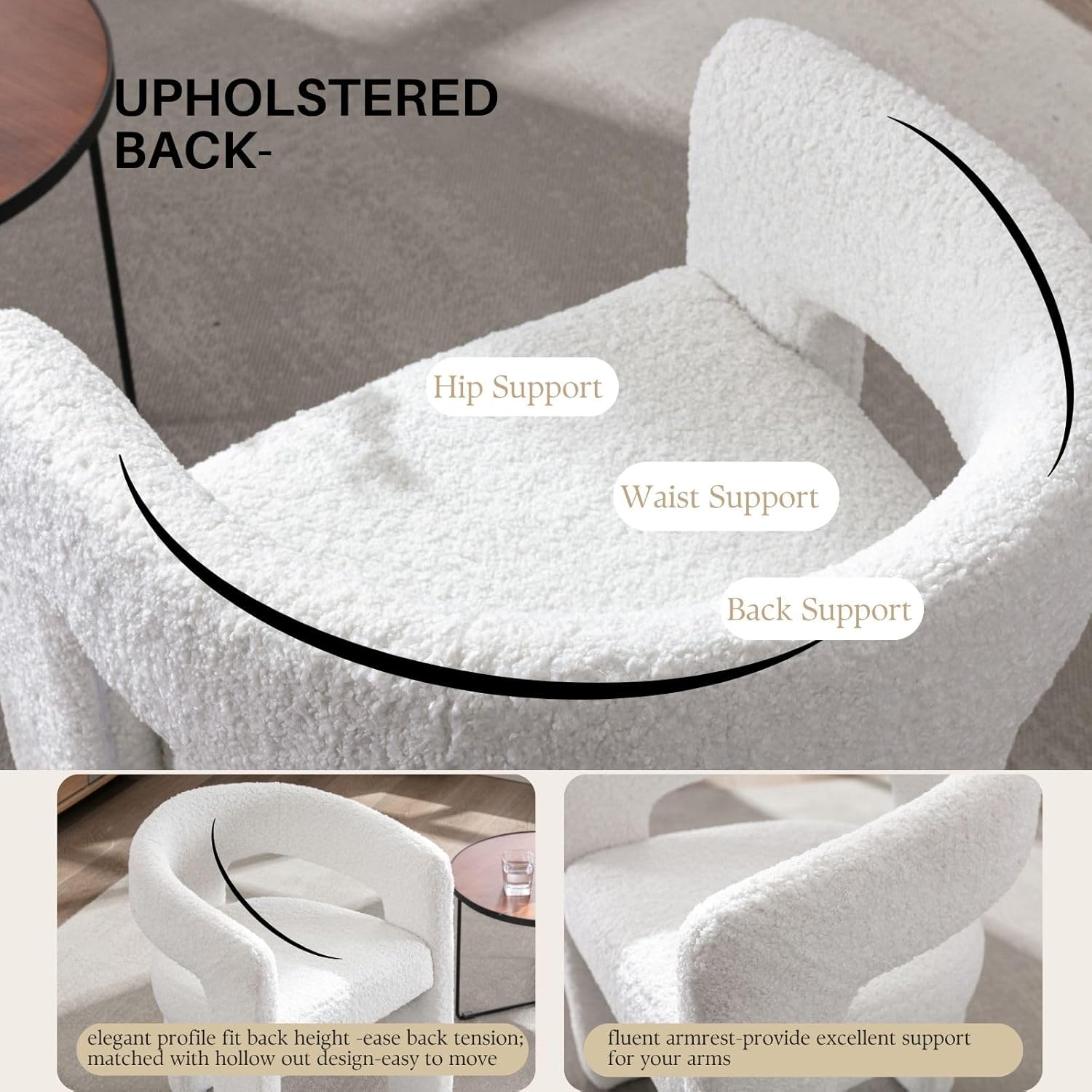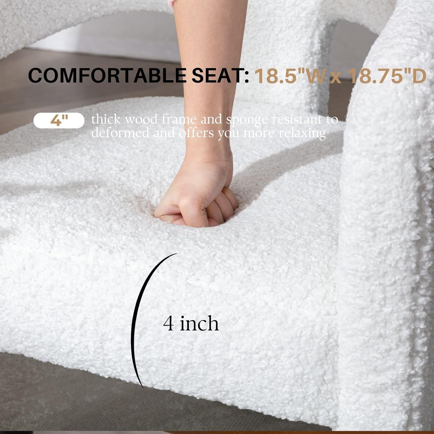 White Boucle Dining Chairs Set of 4, Modern Barrel Dining Room Chairs Upholstered Faux Fur Accent Chair with Arms and Round Back for Living Room Kitchen Armchair No Assembly Needed