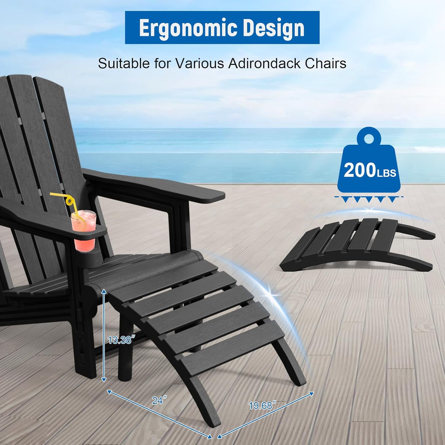 Adirondack Ottoman, HDPE Plastic Adirondack Footstool, All Weather Foot Rest for Adirondack Chair, Outdoor Footrest for Patio,Backyard, Lawn, Fire Pits, Black