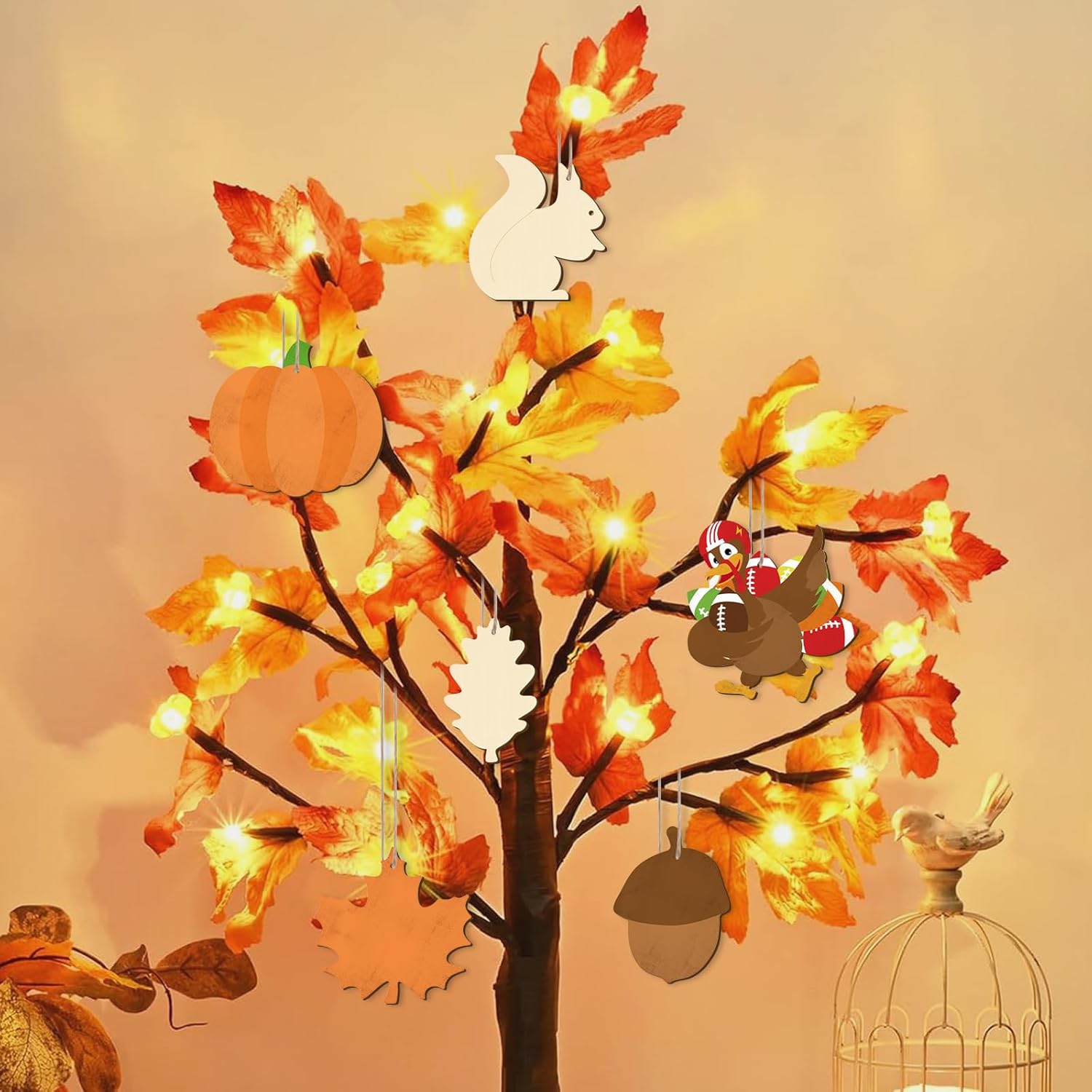 24 PCS Unfinished Wooden Thanksgiving Crafts, Pumpkin Turkey Shaped Hanging Ornaments DIY Wood Craft Cutouts for Thanksgiving Party Decor (Thankgiving)