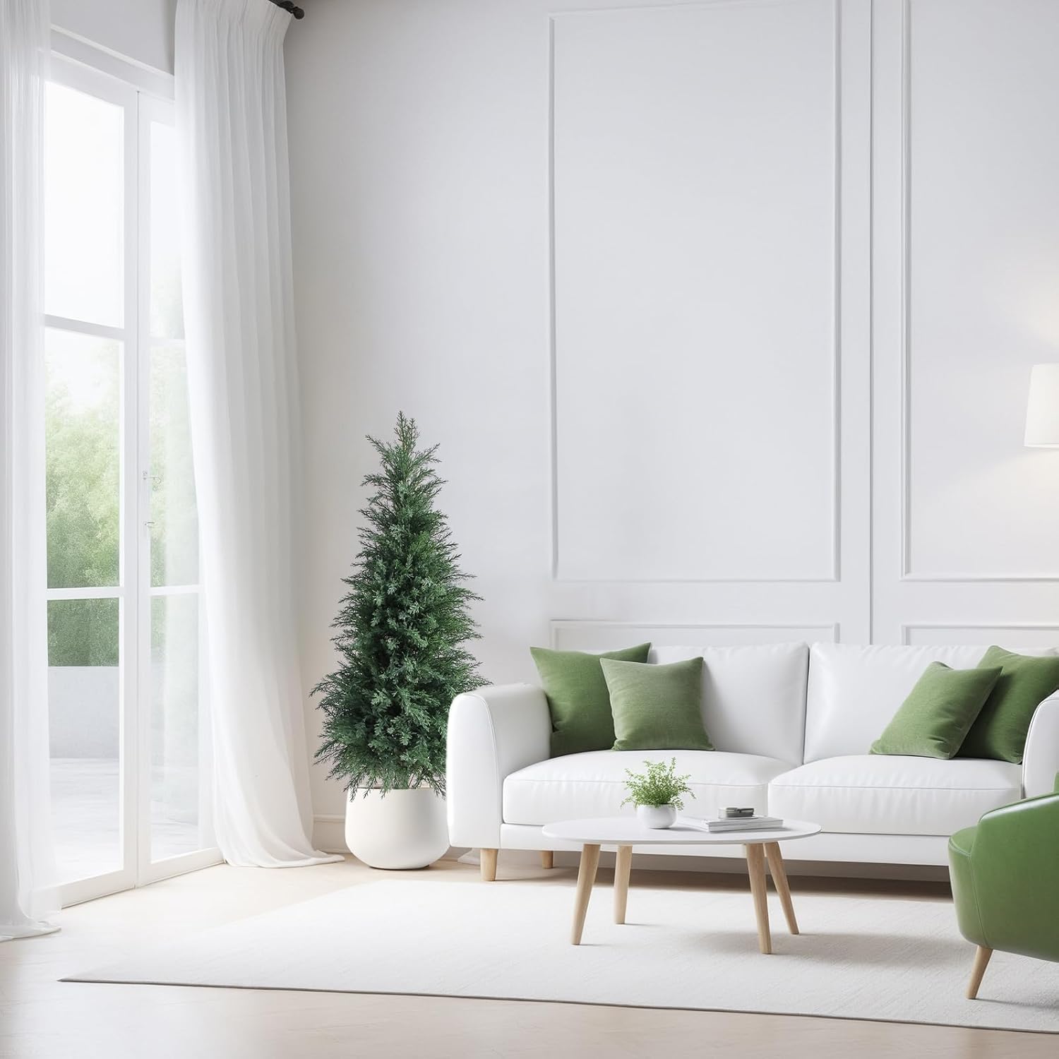 Artificial Cedar Topiary Trees 4FT Set of 2 Lifelike Faux Evergreen Cypress Bushes UV Resistant Outdoor Christmas Trees Realistic Potted Plants for Indoor Outdoor Decor
