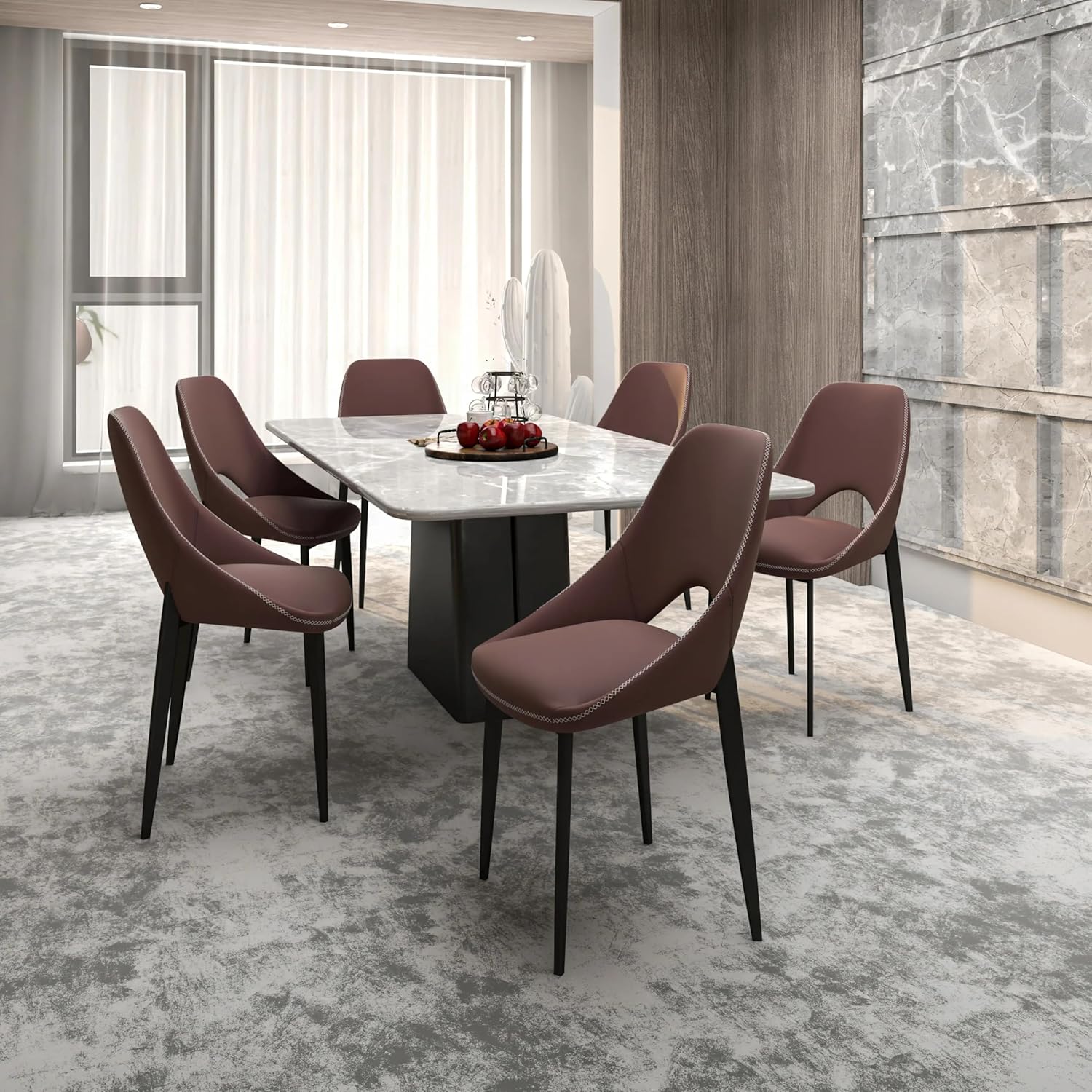 - Relax in luxurious comfort with our modern dining chair, featuring a premium foam-filled seat for supreme comfort during extended periods of sitting. Whether you're dining, conversing, or simply unwinding, you can enjoy unparalleled comfort in style. The solid back design adds elegance and provides support, while the open back promotes breathability, making the Amalfi modern accent chair ideal for any occasion.