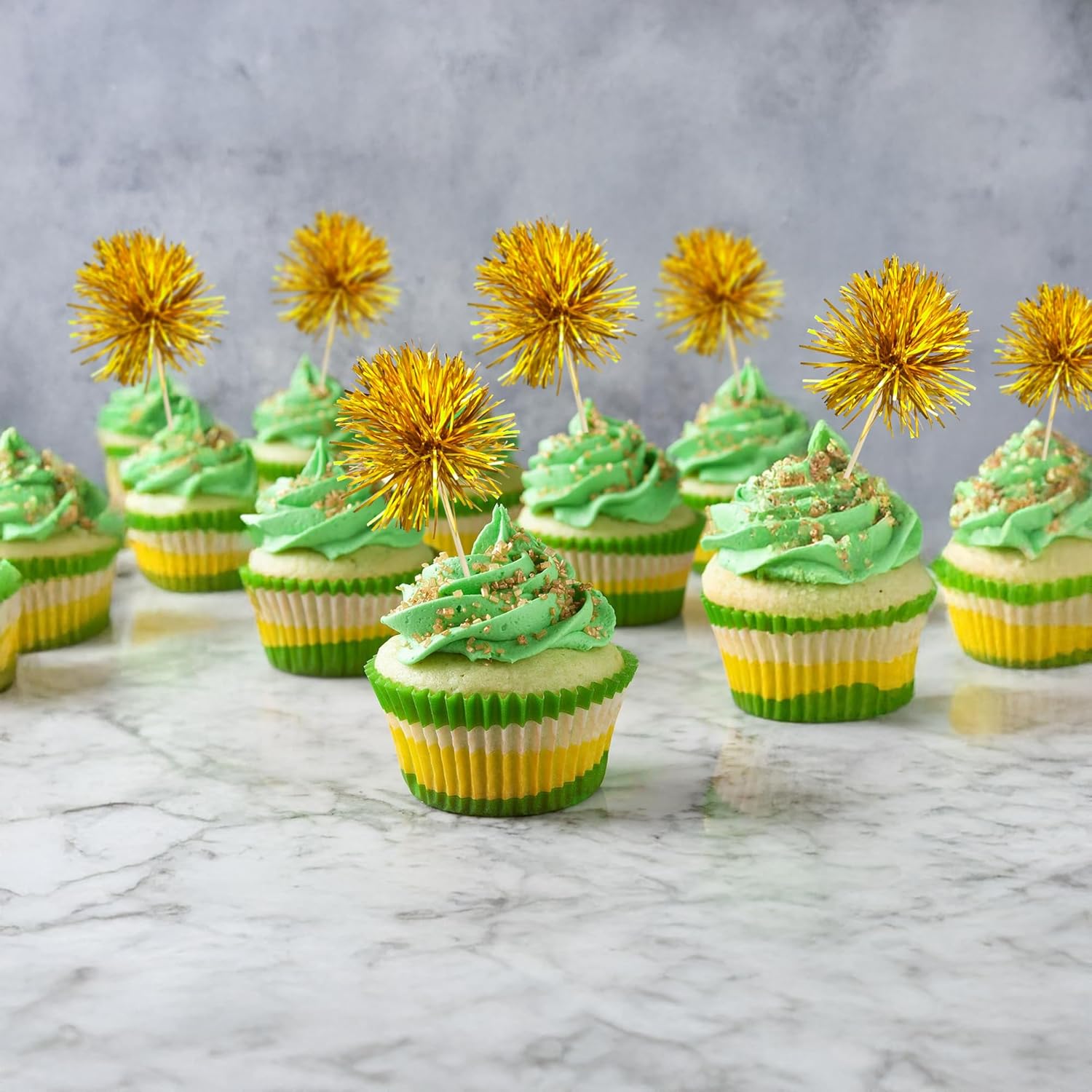 - 【NO Required】: 30Pcs Foil Firework cupcake toppers can put in the cake directly! These 30Pcs Foil Firework Cupcake toppers save your time and super easy to use. You can easily dress up your birthday theme cakes, yes! but don't stop there, put them into desserts, cookies, fruit pieces, appetizers, muffins and so much more!