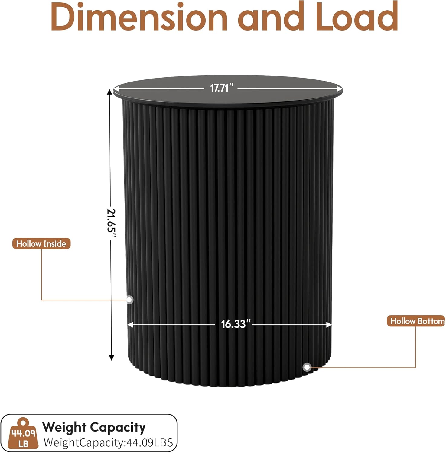 AVZEAR Small Round Side Table Fluted Night Stand Set of 2, 17.7" Mid Century Modern End Table, Circle Bedside Tables Wood Nightstands for Small Spaces, Living Room, Bedroom(Black)