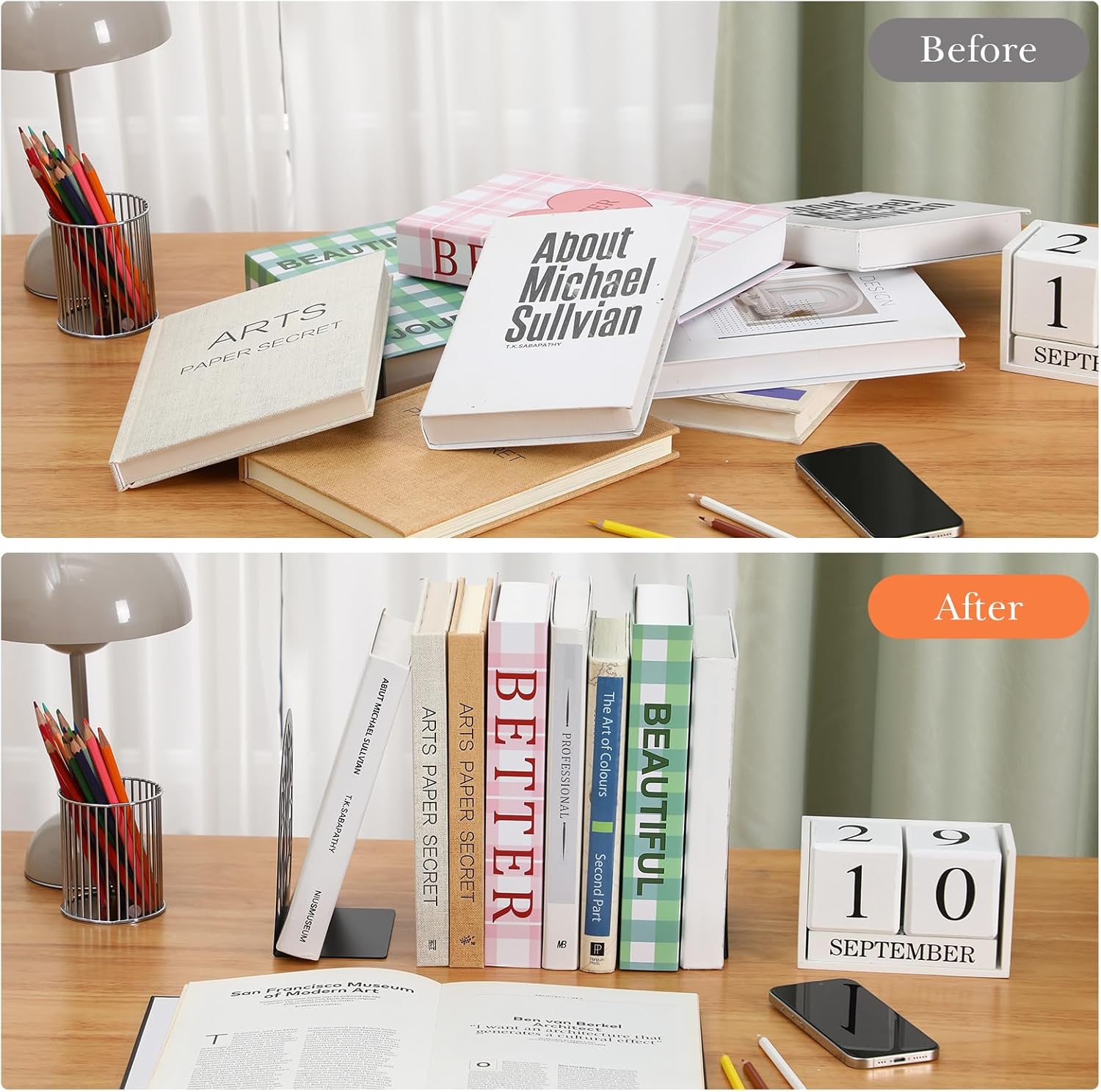 - Stable and Non Slip: each modern decorative bookend has 4 non slip foam pads at the bottom, making the bookend more stable on the desktop or bookshelf, preventing the bookend from sliding and scratching the surface of the desktop or bookshelf