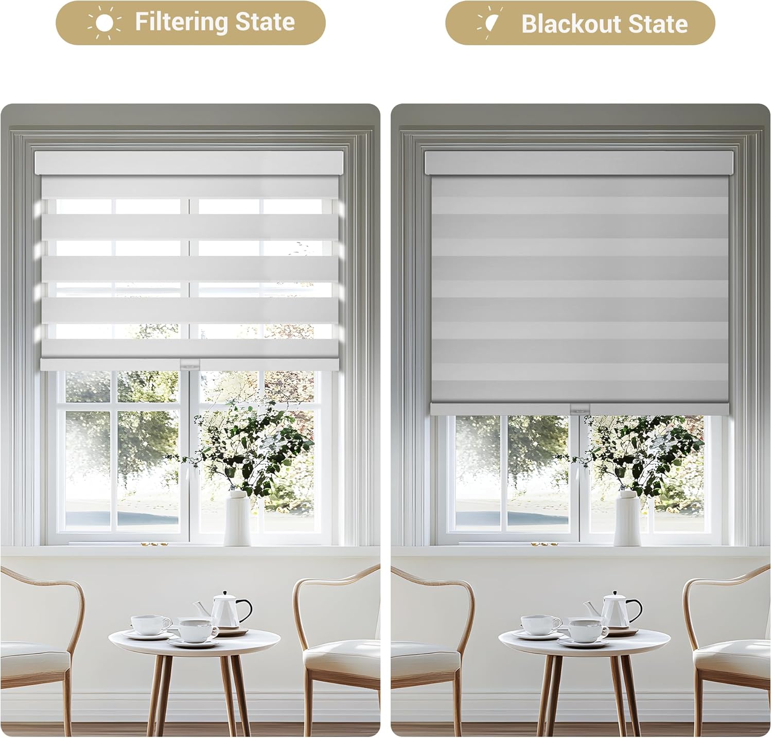 Cordless Zebra Blinds for Windows, Blackout Interior Blinds,Easy to Install,UV Protection,for Offices and Home,Custom Roller Shades, Solid White, 15" W x 56" H