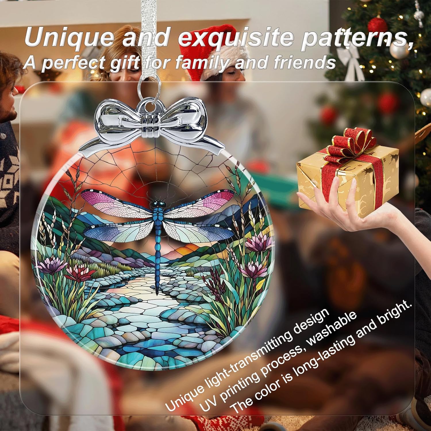 Dragonfly Stained Glass Christmas Ornament - Hanging Ornaments for Christmas Tree Decorations -Holiday Keepsake Present Exchange Idea