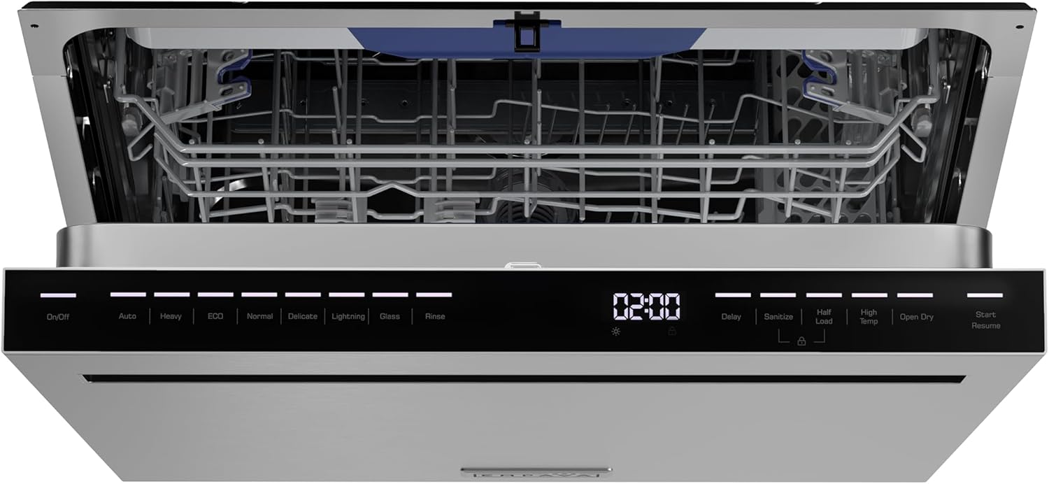 Empava 24 Inch Built-in Dishwasher, Stainless Steel Tub 15 Place Settings, 8 Wash Cycles, Top Control, Auto Door Dry, 49 dB Ultra Quiet, Energy Star & UL Certified