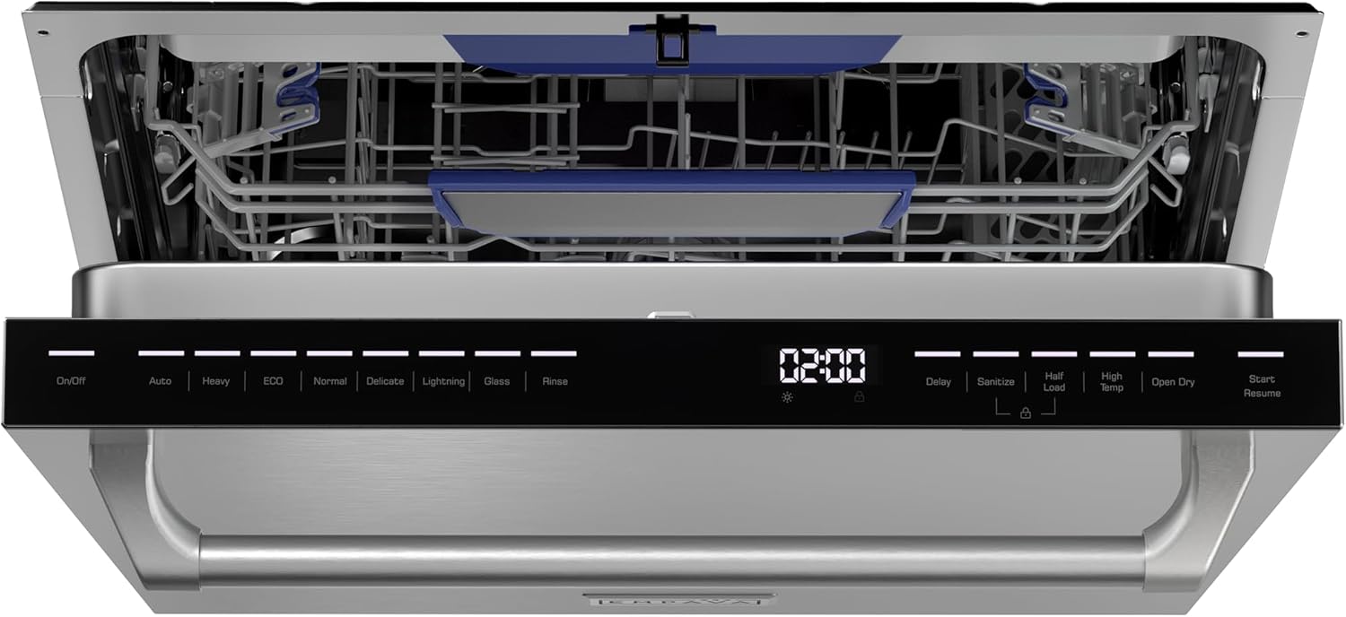 - 8 Cycles + Smart Options β Choose Auto, Heavy, Eco, Glass, and more with custom options like Delay Start and Sanitize.