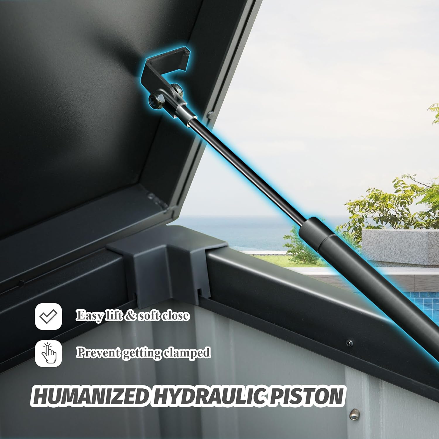 Domi Deck Box 190 Gallon, Waterproof Lockable Steel Outdoor Storage Container for Outside Cushions, Garden Tools and Pools Equipment, Gray