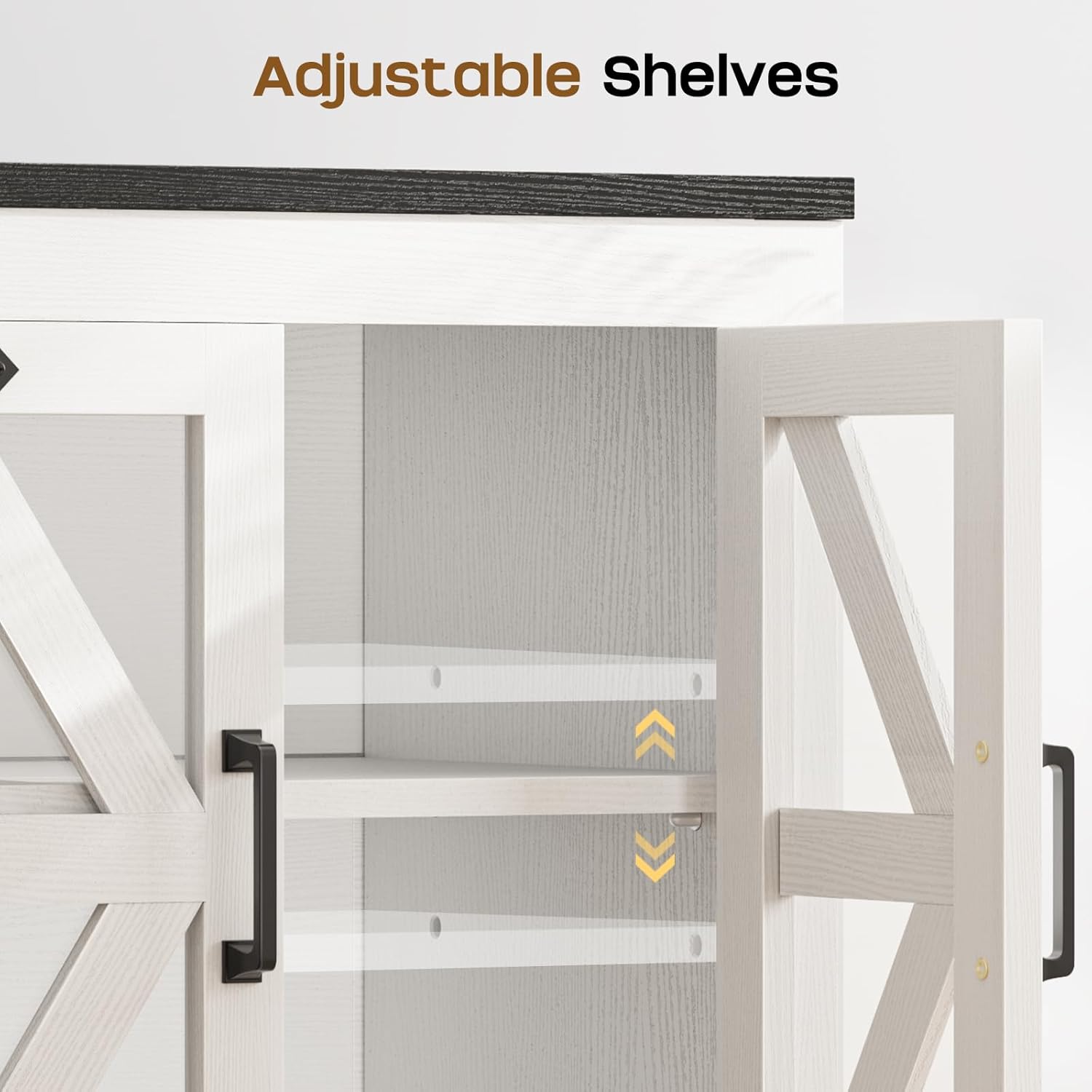 Farmhouse Side Table with Storage Cabinet, End Table with Adjustable Shelf, Large Night Stand, Wood Nightstand with Charging Station, 24" End Tables Living Room, Rustic Bed Side Tables Bedroom